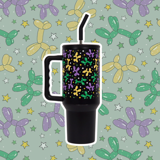 Limited Edition Metal: "Balloon Dog Mardi Gras" Tumbler with Handle Lid & Straw