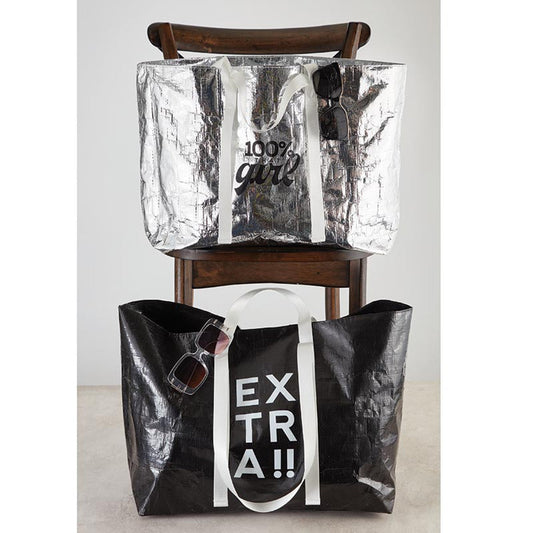 100% That Girl Large Silver Wrinkle Carry All Bag | Big Grocery Shopping Tote Bag
