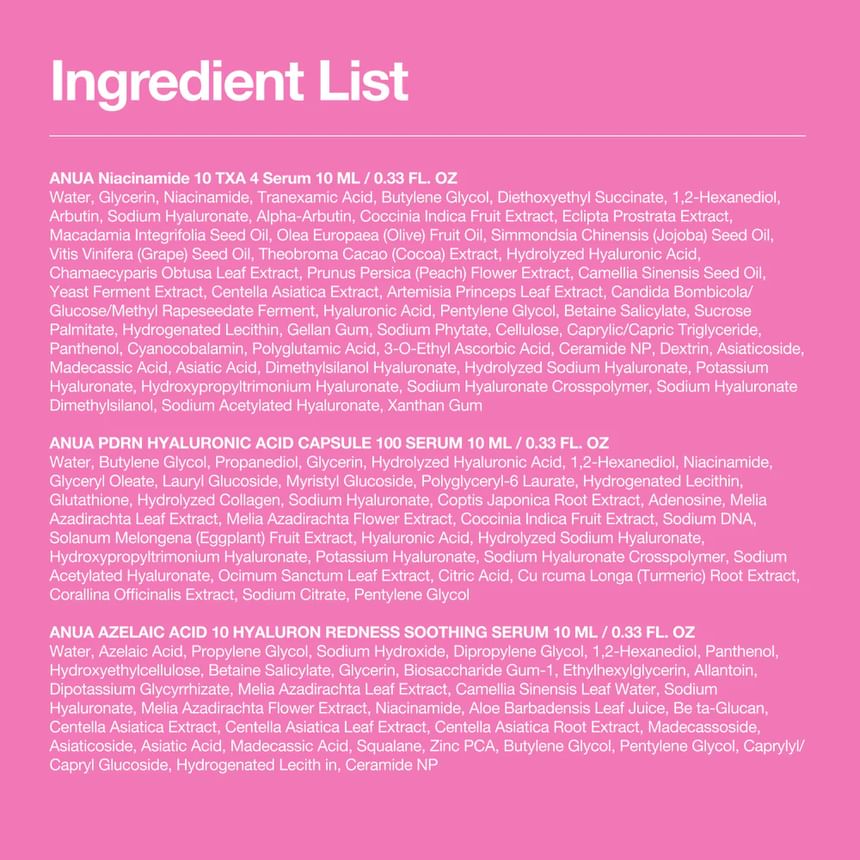 - Enriched with Anua's Gentle Calming Complex™ made from blue tansy oil, ubiquinone, green tea leaf water, aloe leaf juice and seven types of cica, a combination that eases irritation while giving the formula its natural green tint.