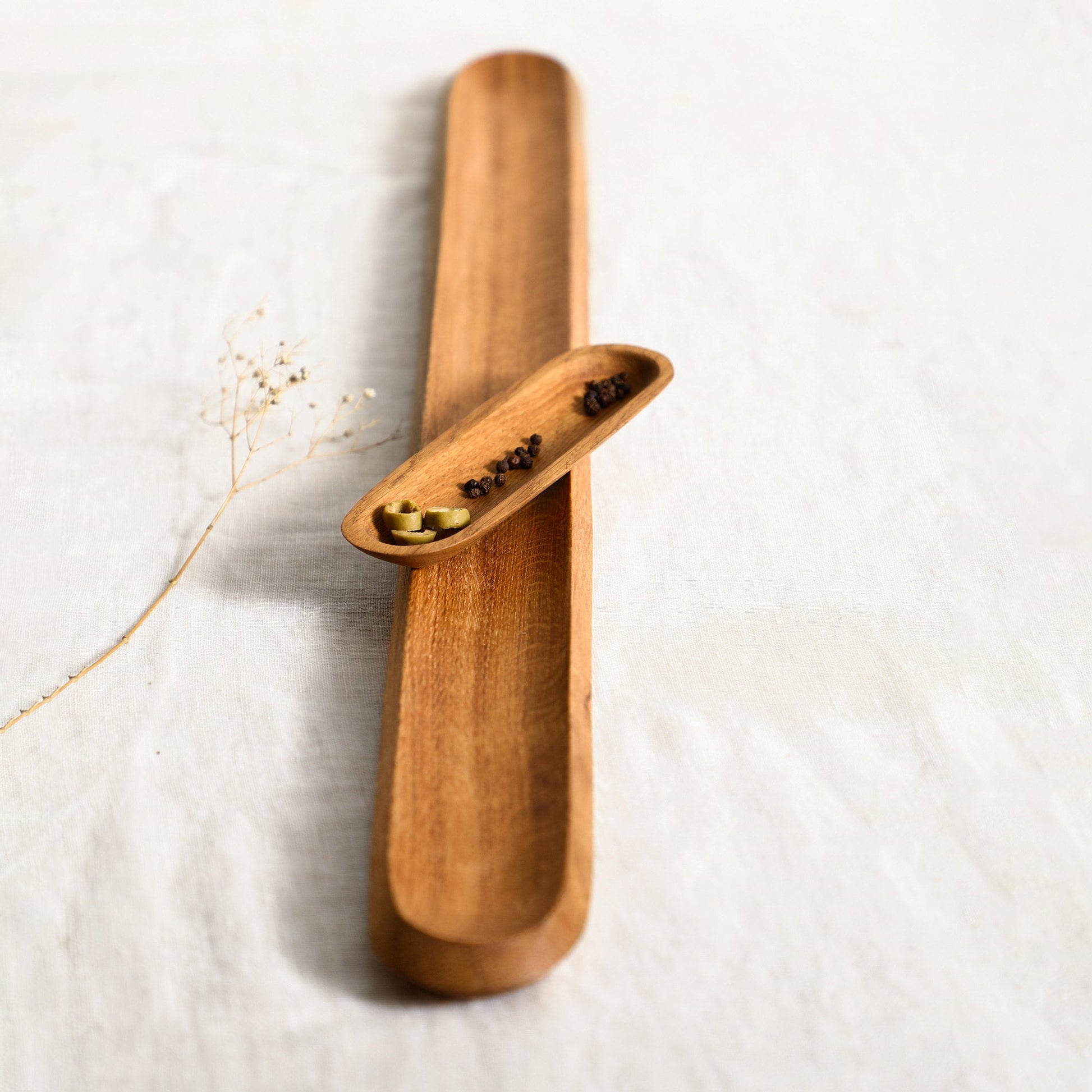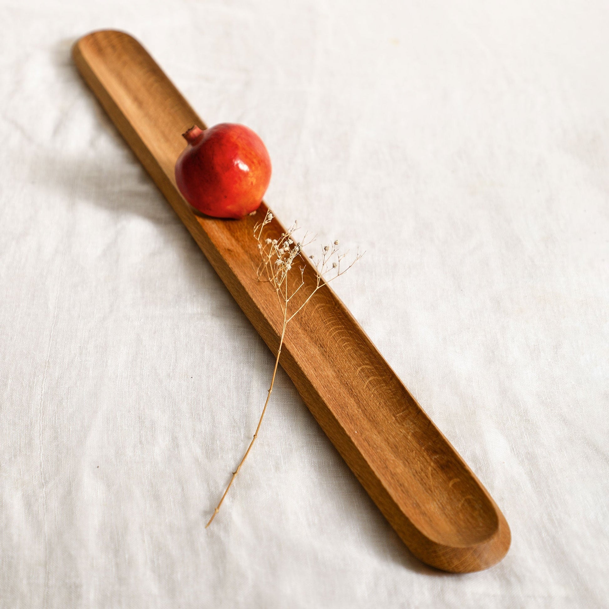 Hand-carved from premium French oak, this gently curved, canoe-shaped dish highlights the wood’s natural grain and character. Finished with food-safe oil, it’s perfect for serving snacks like nuts or olives, or for holding trinkets on a dresser. A versatile and elegant addition to the Belfort collection.