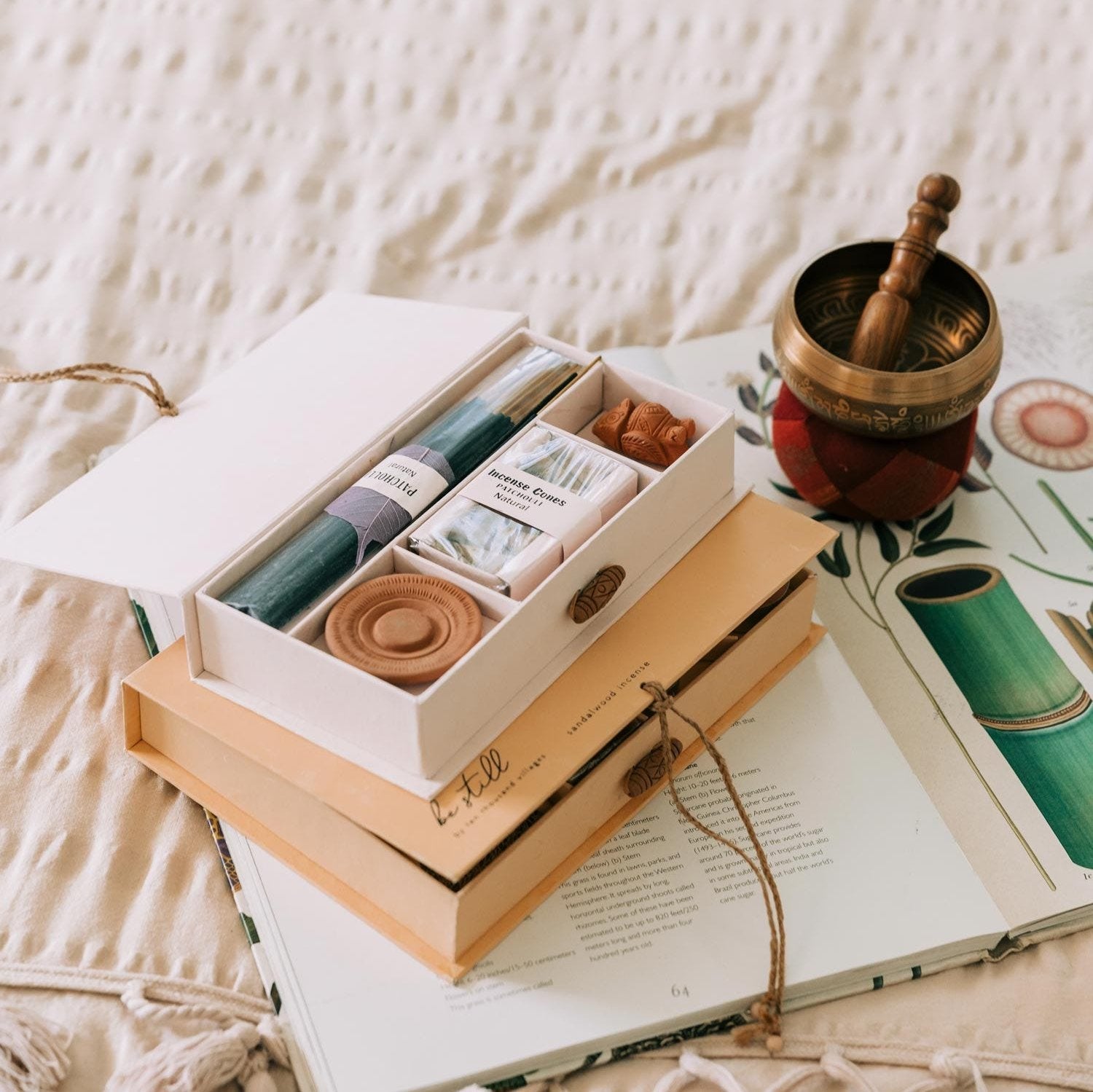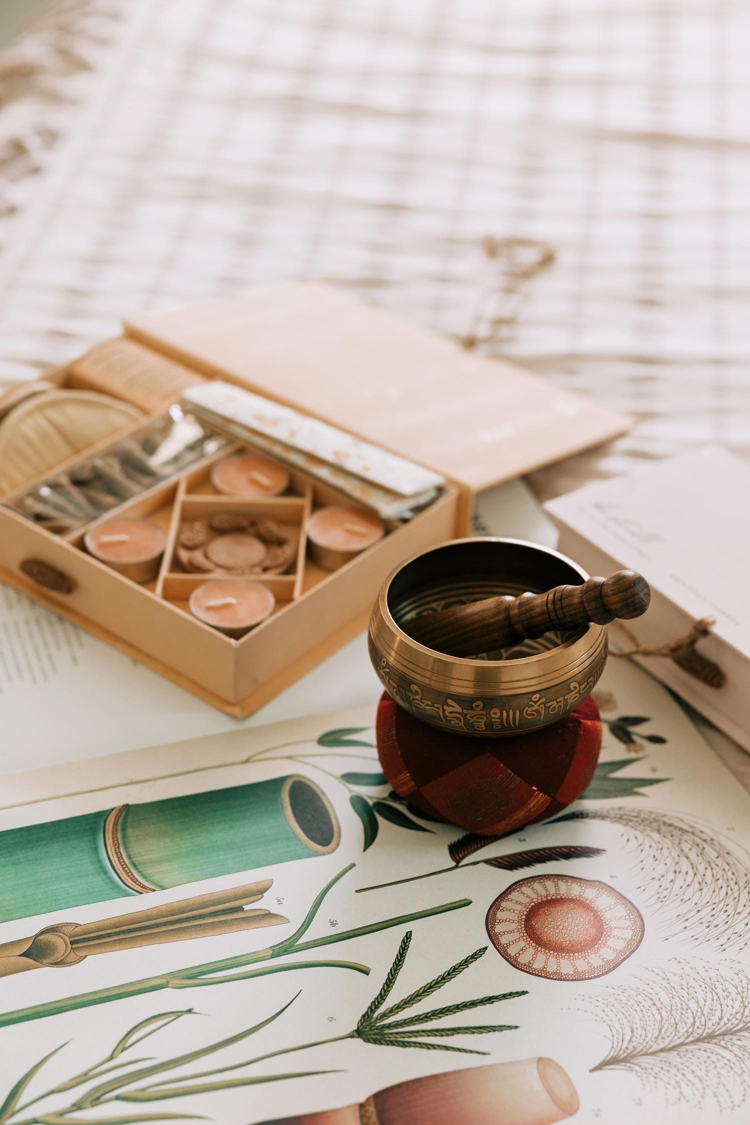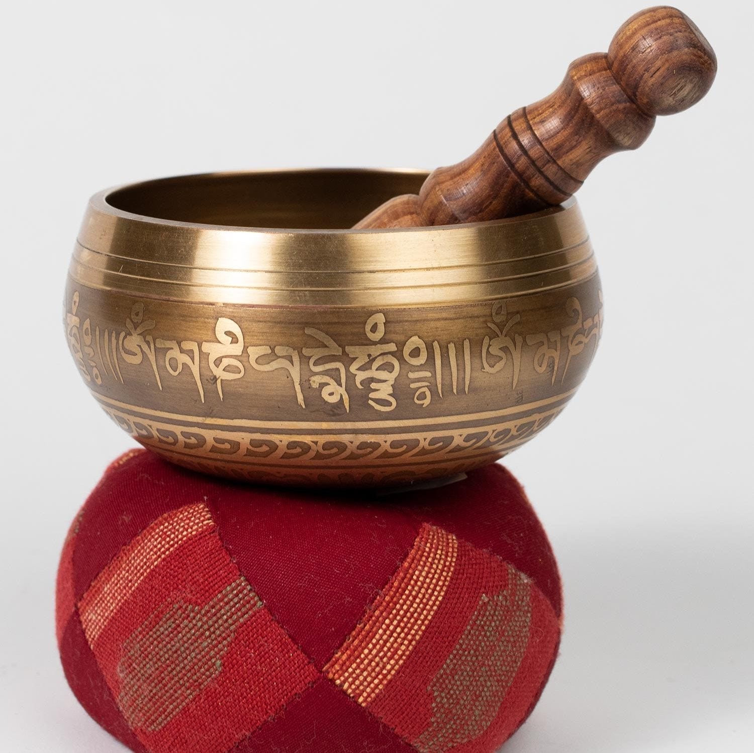 Singing bowls are idiophones that have been used in meditation and sound therapy for thousands of years. The Calm Wisdom Singing Bowl is handcrafted in Nepal by artisans whose singing bowl casting knowledge is vast and generational. The bowl is inscribed both on the inside and outside in Tibetic with the Buddhist chant, "Om Mani Padme Hum," which boasts a syllable that focuses on each of the practices of Buddhism from generosity to wisdom. The chant is said to focus the individual on achieving perfection in each practice and bringing one to a purer existence. The Yin Yang on the under side of the bowl remind us to seek balance—that life is most fulfilling when we embrace the dark with the light, the difficult seasons with the joyous.