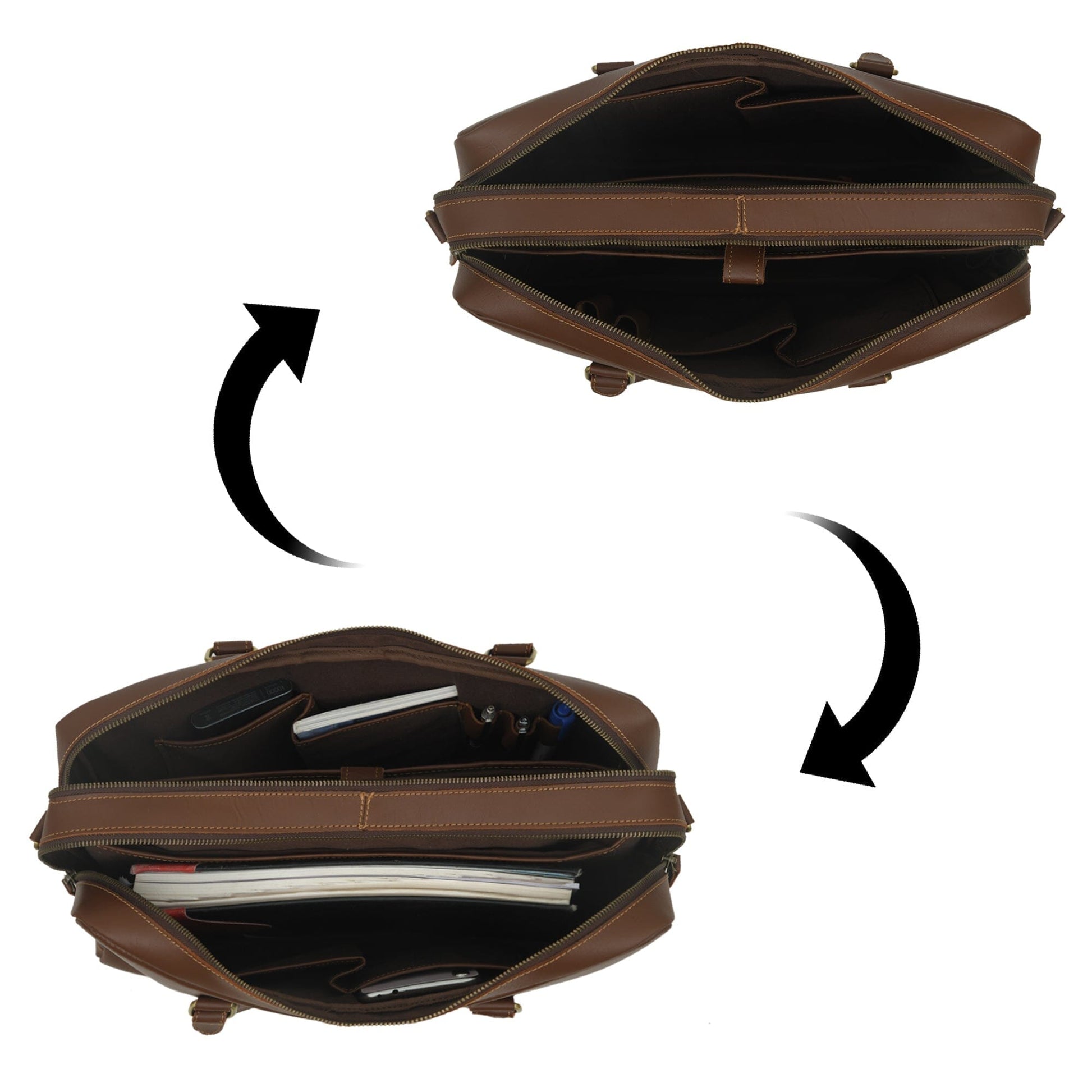 Designed for regular office commuters, this office briefcase from Classy Leather Bags will be a great pick to carry the laptop in style. Made from premium buffalo leather, this durable and classy work-wear bag features double compartments and a detachable and adjustable shoulder strap.