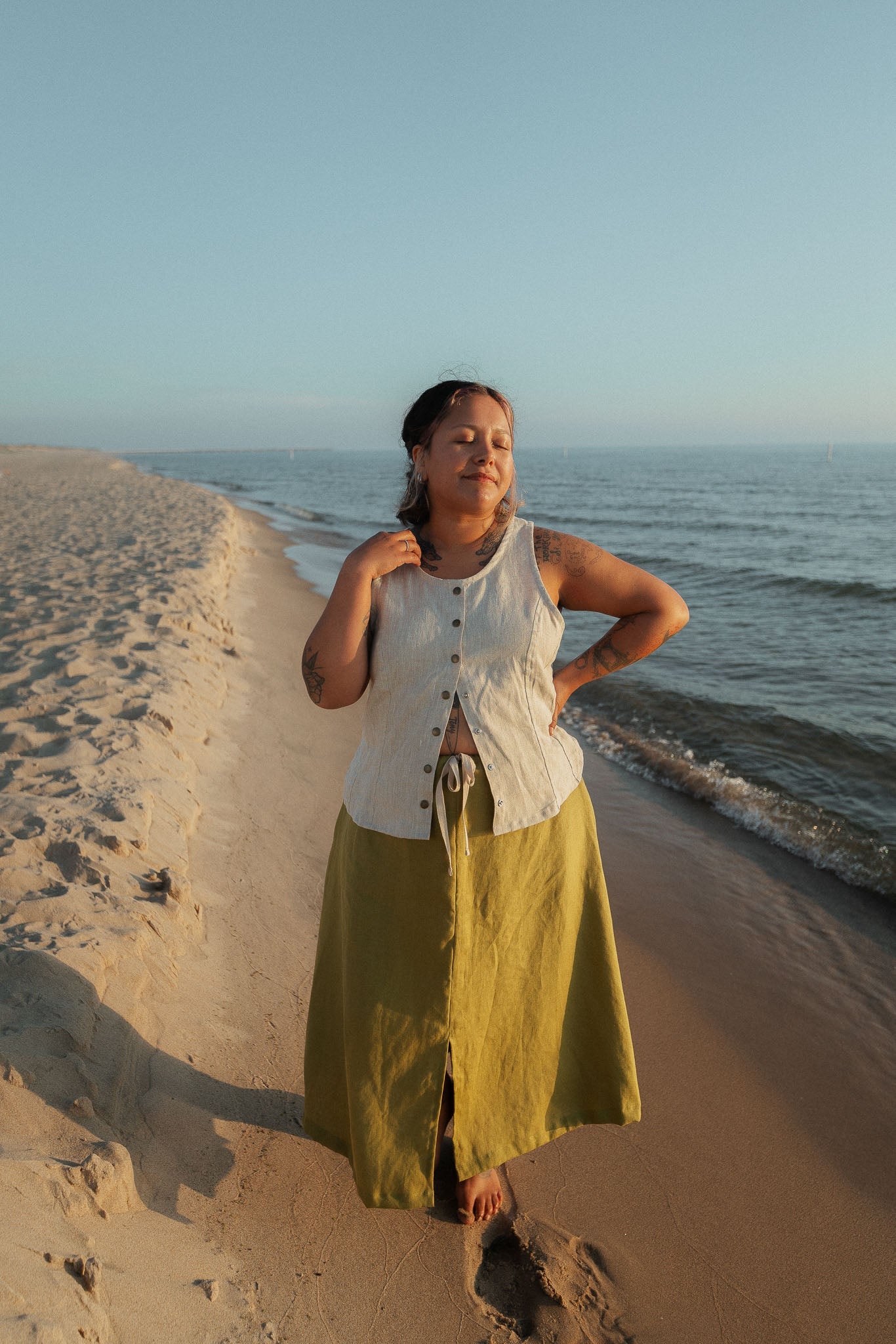 100% Linen Esme Skirt – Adjustable Midi Skirt with Customizable Slit