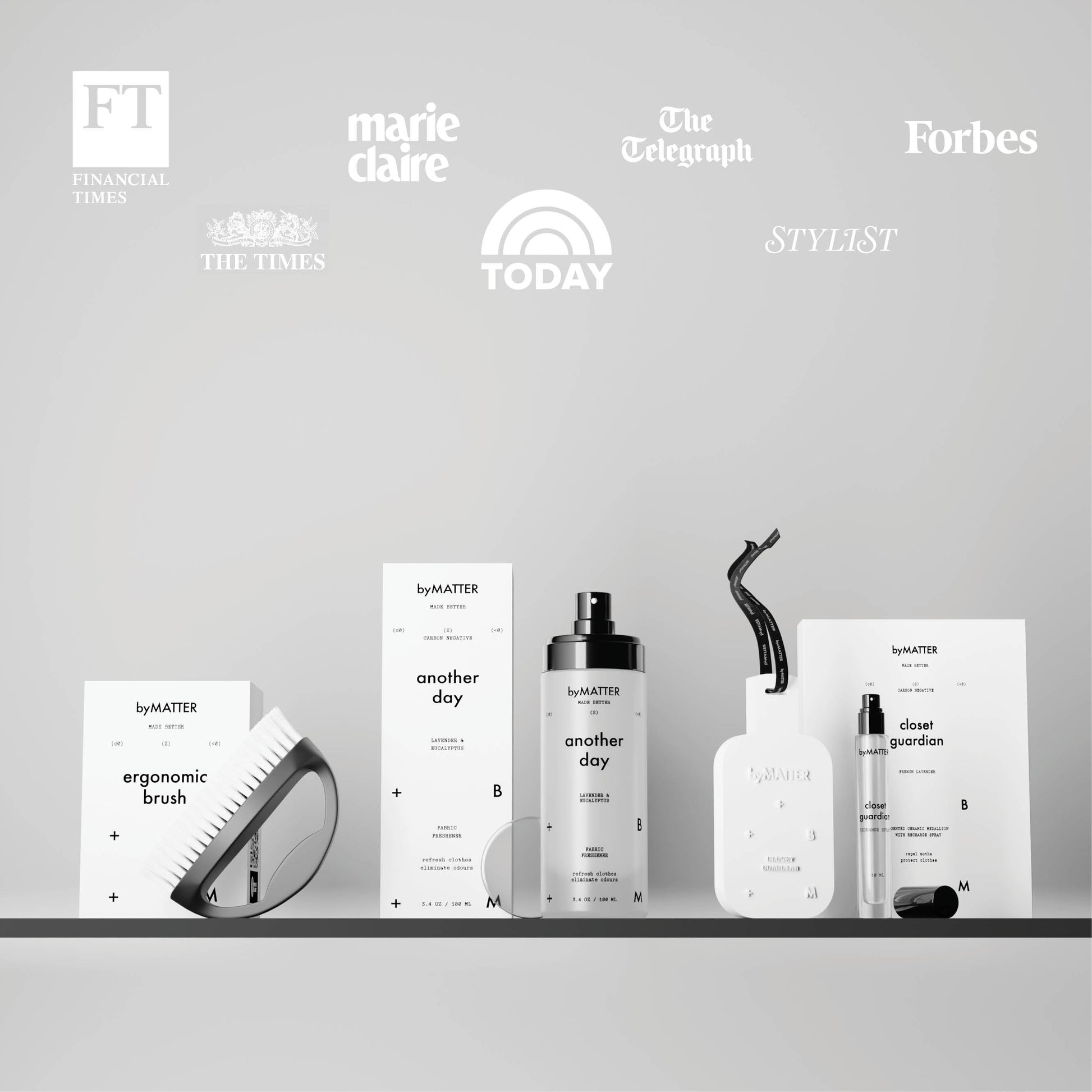 The Fabric Kit brings together byMATTER’s fabric care essentials in one bundle. Closet Guardian keeps your wardrobe fresh and moth-free, Another Day refreshes fabrics, and the Ergonomic Brush helps to tackle dirt and stains on clothes and shoes.