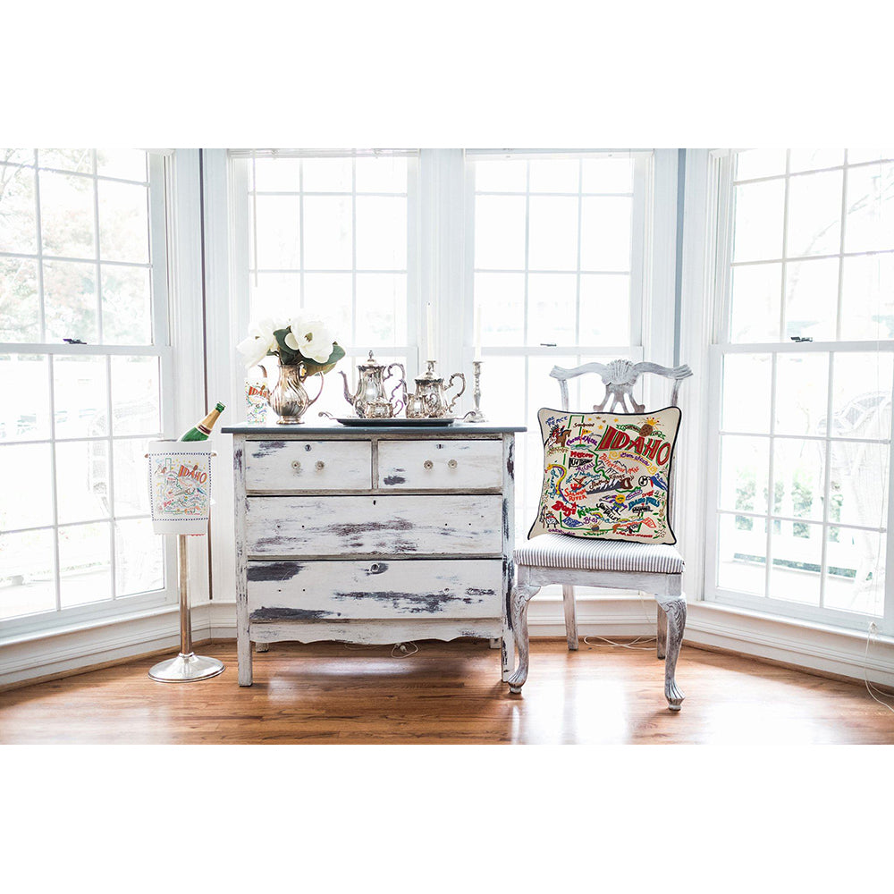 This original design celebrates the beautiful State of Idaho. Terrell Swan, one of the owners of catstudio, spent his summers on his grandparents ranch in eastern Idaho riding horses & eating spuds. He insisted that this design be a beauty to reflect Idaho's natural bounty - it does!
