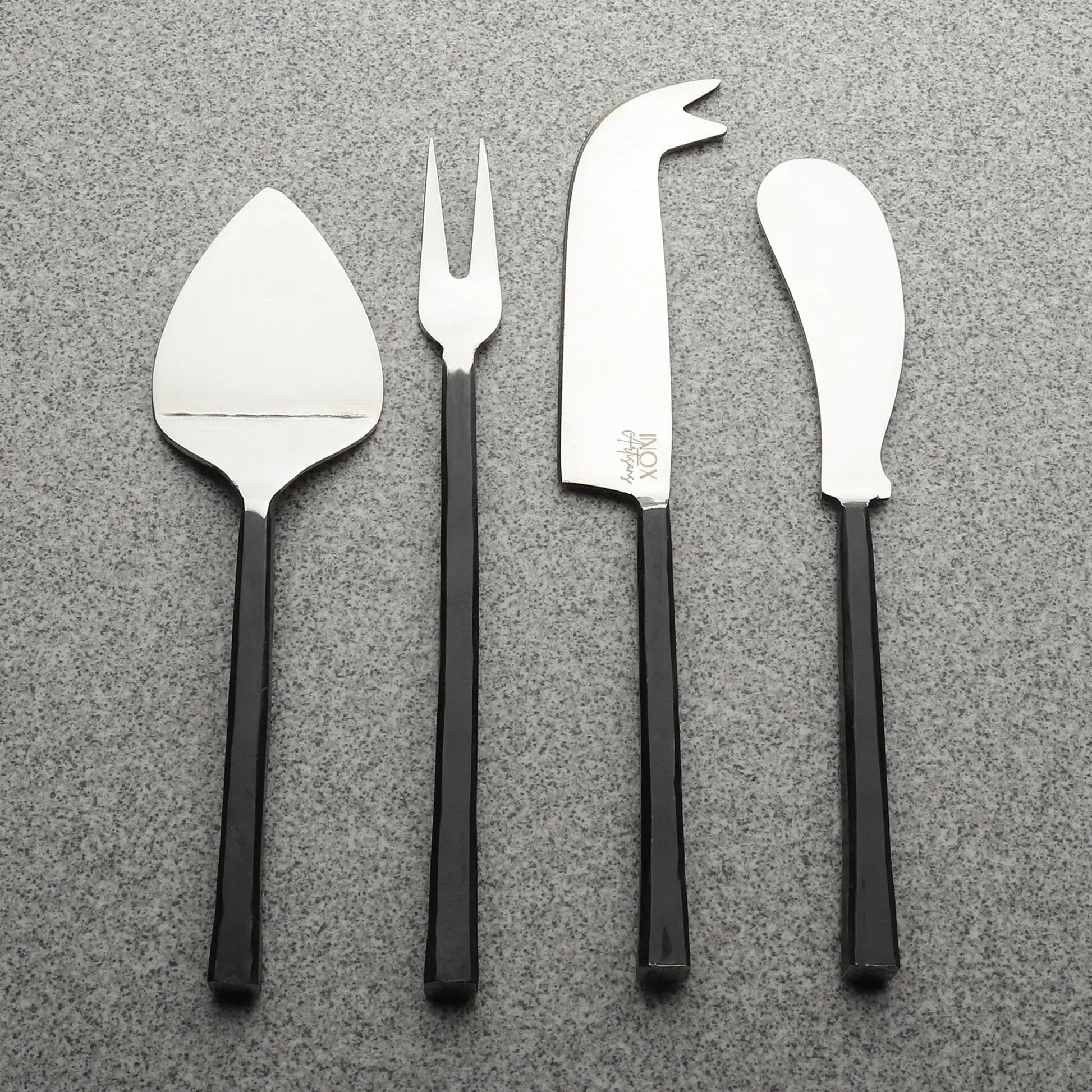 • Set includes: 1 pronged cheese knife, 1 cheese spreader, 1 two-prong fork and 1 cheese server