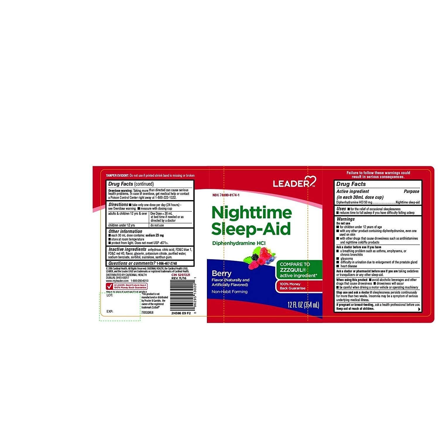 Leader Nighttime Sleep Aid 50Mg Liquid Berry Flavor, 12 Oz