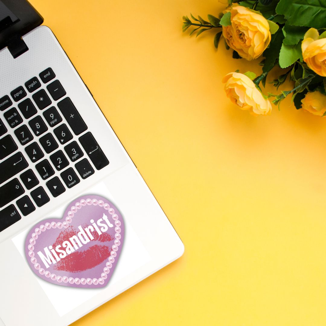 Embrace your inner Miss Andry with this bold Misandrist glossy vinyl sticker. Measuring 2.95" x 2.51" and featuring a protective UV finish, this sticker is perfect for laptops, water bottles, bikes, and more. Makes a thoughtful gift for the fierce feminist in your life.