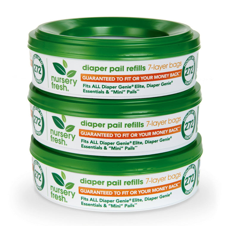 Each Refill cartridge holds up to 272 newborn diapers. Made with 7-layer film. Fits Diaper Genie Elite®, Diaper Genie II Elite®, Diaper Genie®, Essentials and Diaper Genie® II pails.