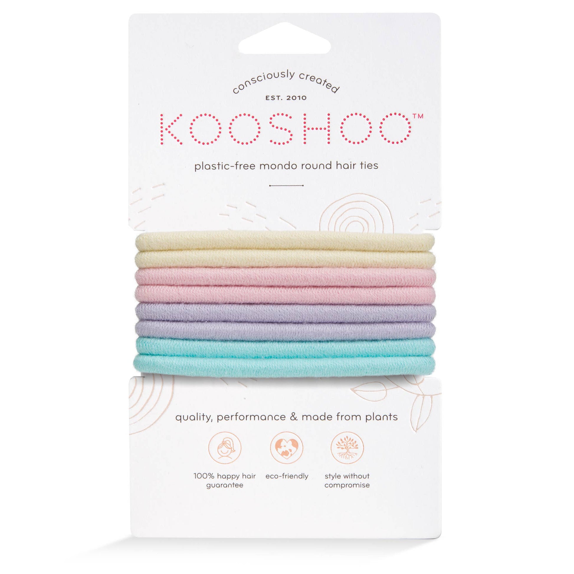 KOOSHOO Plastic-Free Mondo Hair Ties - Organic Cotton Round Hair Elastics - Machine Washable, Durable, No-Damage Hair Bands Made from Plants - Zero-Waste, Fair Trade, Ethical Styling Accessories HIGH QUALITY PLASTIC-FREE HAIR TIES: Built to last, made from only certified organic cotton and 100% sustainably sourced, fairtrade natural tree rubber. Designed to be high on style & comfort, low on footprint. SUPERIOR STRENGTH & STRETCH: Lab-proven to be 2x stronger than the leading, plastic-laden brand. Purchase with peace of mind knowing our hair ties will last in your hair, but not in a landfill! GREAT FOR YOUR HAIR: Durable, creaseless & won’t pull, slip, or damage your hair! Available in a variety of fresh colors, look great when worn as a bracelet, & have a smooth rounded edge to match your fave styles. SOCIALLY & ENVIRONMENTALLY CONSCIOUS: 100% plastic-free & ethically made from sustainably sourced, all natural, plant-based materials, and dyed using certified non-toxic dyes.