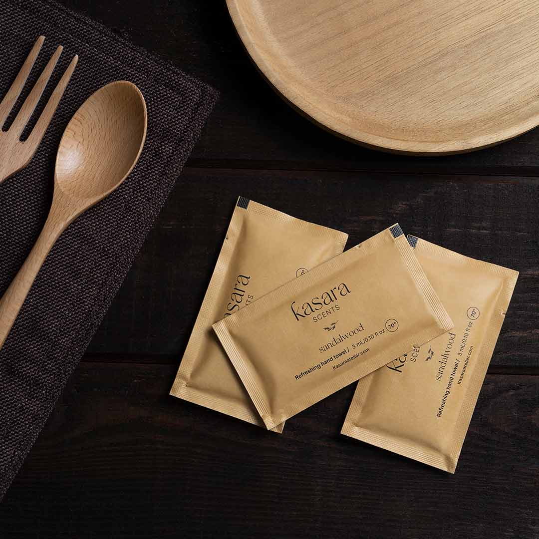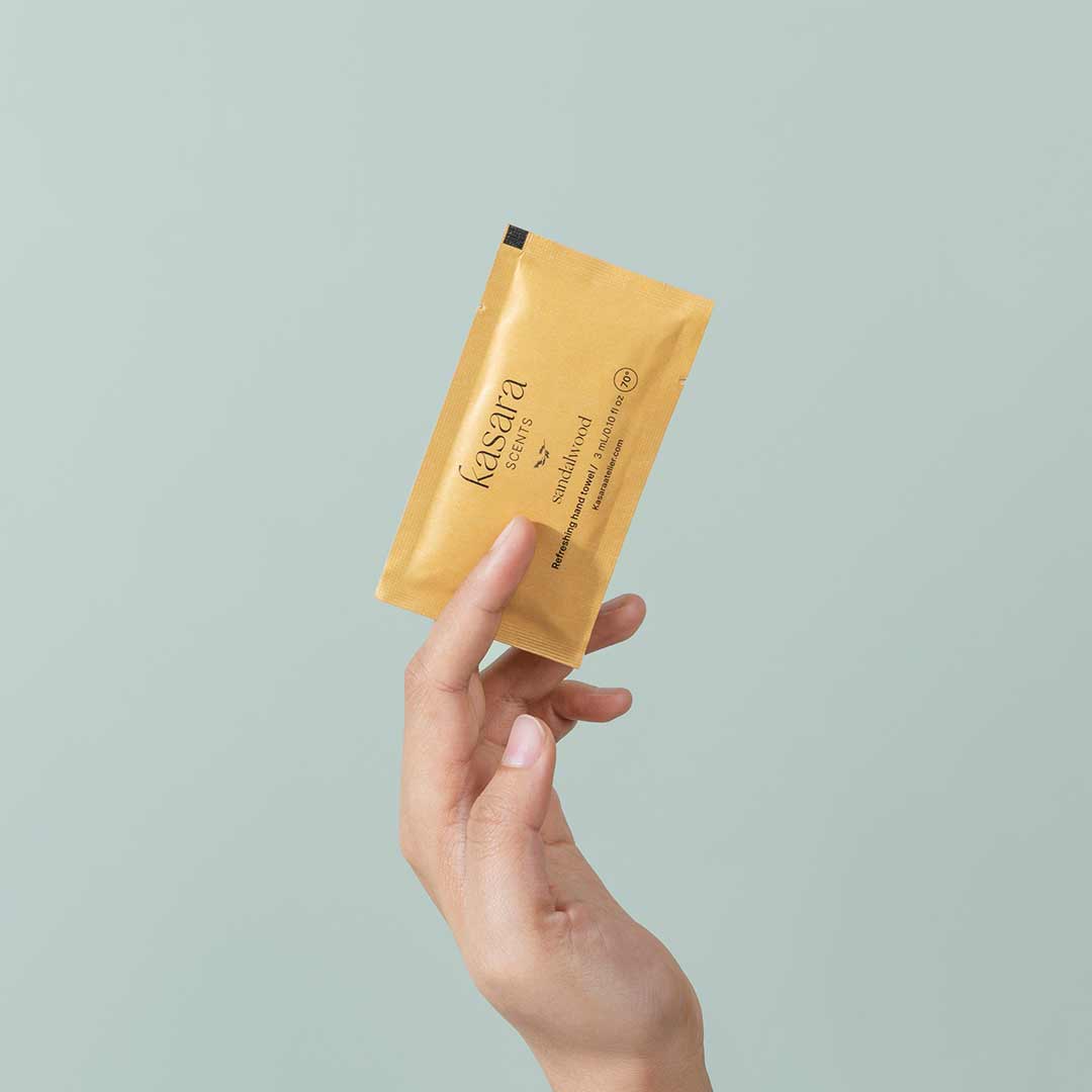 Experience the soothing scent of sandalwood and keep your hands clean with Kasara Sandalwood perfumed wipes. Whether you're out for a meal, traveling, or need a quick refreshment during the day, these wipes are the perfect choice to keep your hands clean and fragrant.