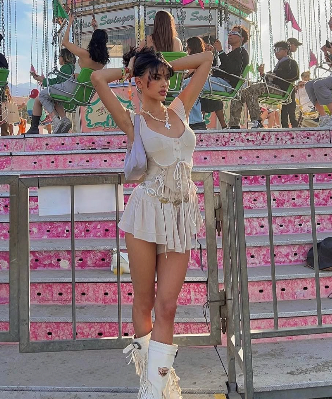 Mia is 5’8”, Bust: 32D, Waist: 25”, Hips: 35” and is wearing a size X-Small.