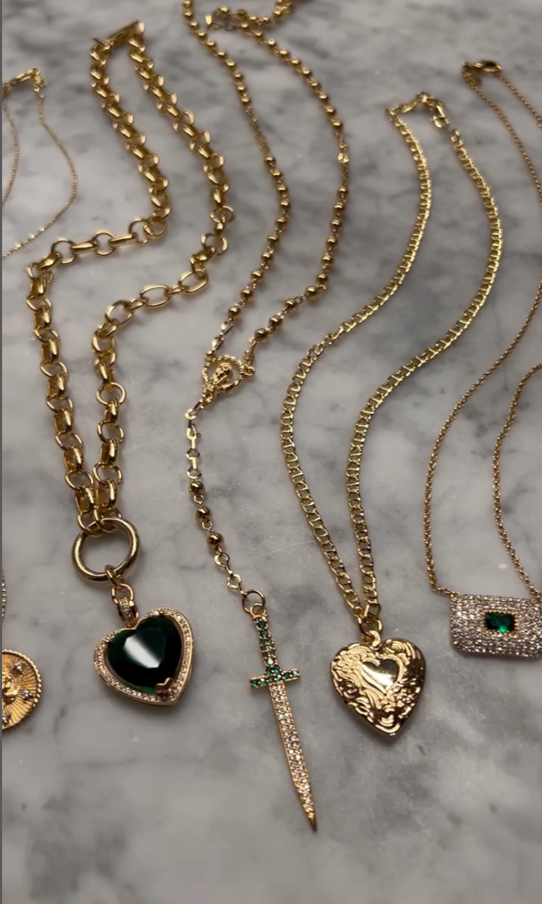 Introducing The Jules Necklace. The Jules Necklace features an oval link chain, centered by a golden circle and a sparkling crystal heart-shaped CZ. Made from 18K gold-dipped brass and finished with a lobster clasp closure. One of the most beautiful.