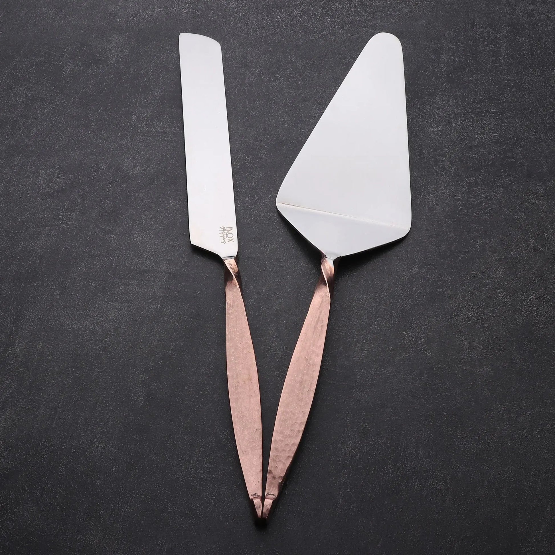 The Twisted Urban cake and piece serving set is the ultimate companion for all cake-serving occasions. Our 2-piece cake set is a blend of urban aesthetics and practical functionality that brings a twist to your dessert experience. With quality craftsmanship throughout, this hammered cake serving set is a thoughtful gift for any occasion.