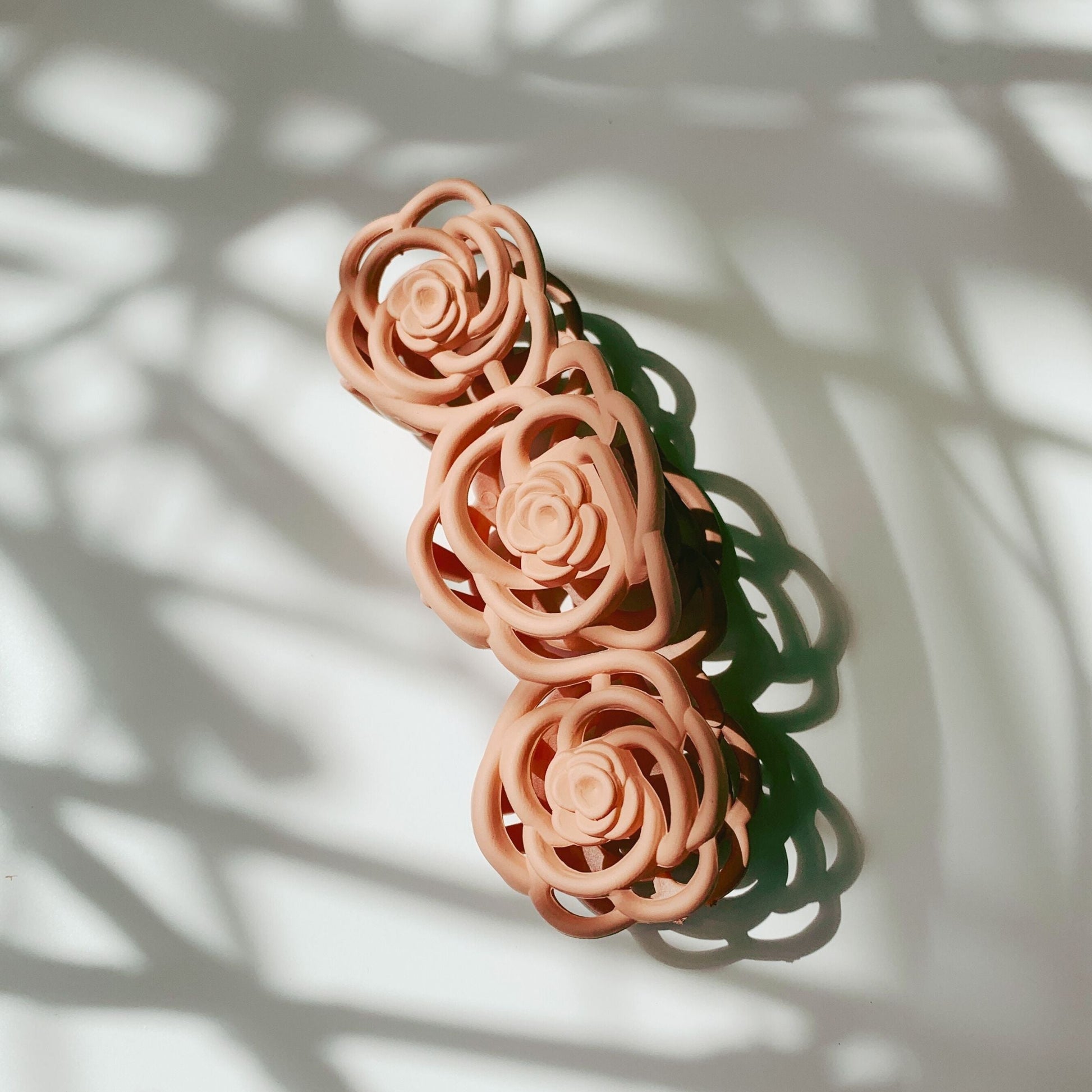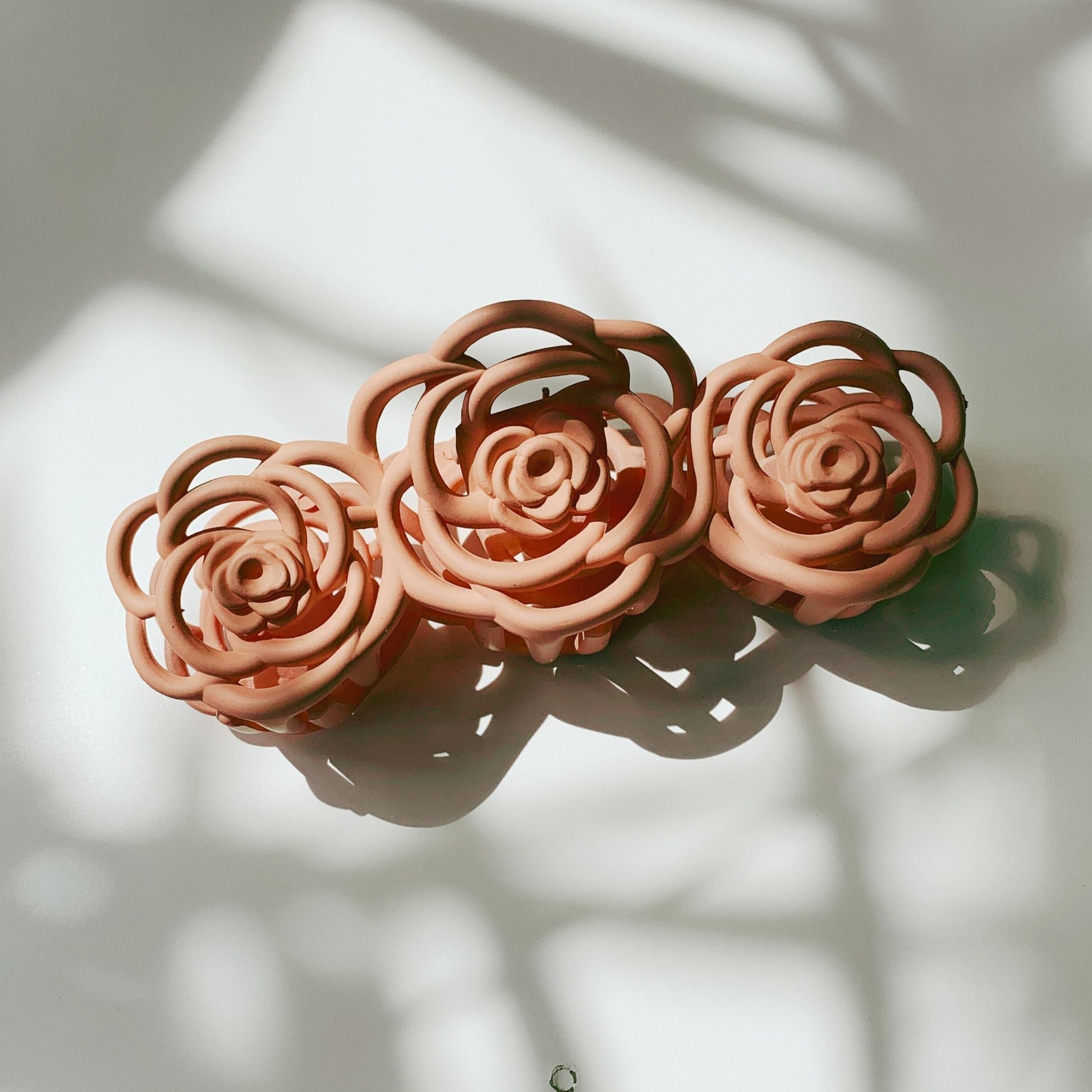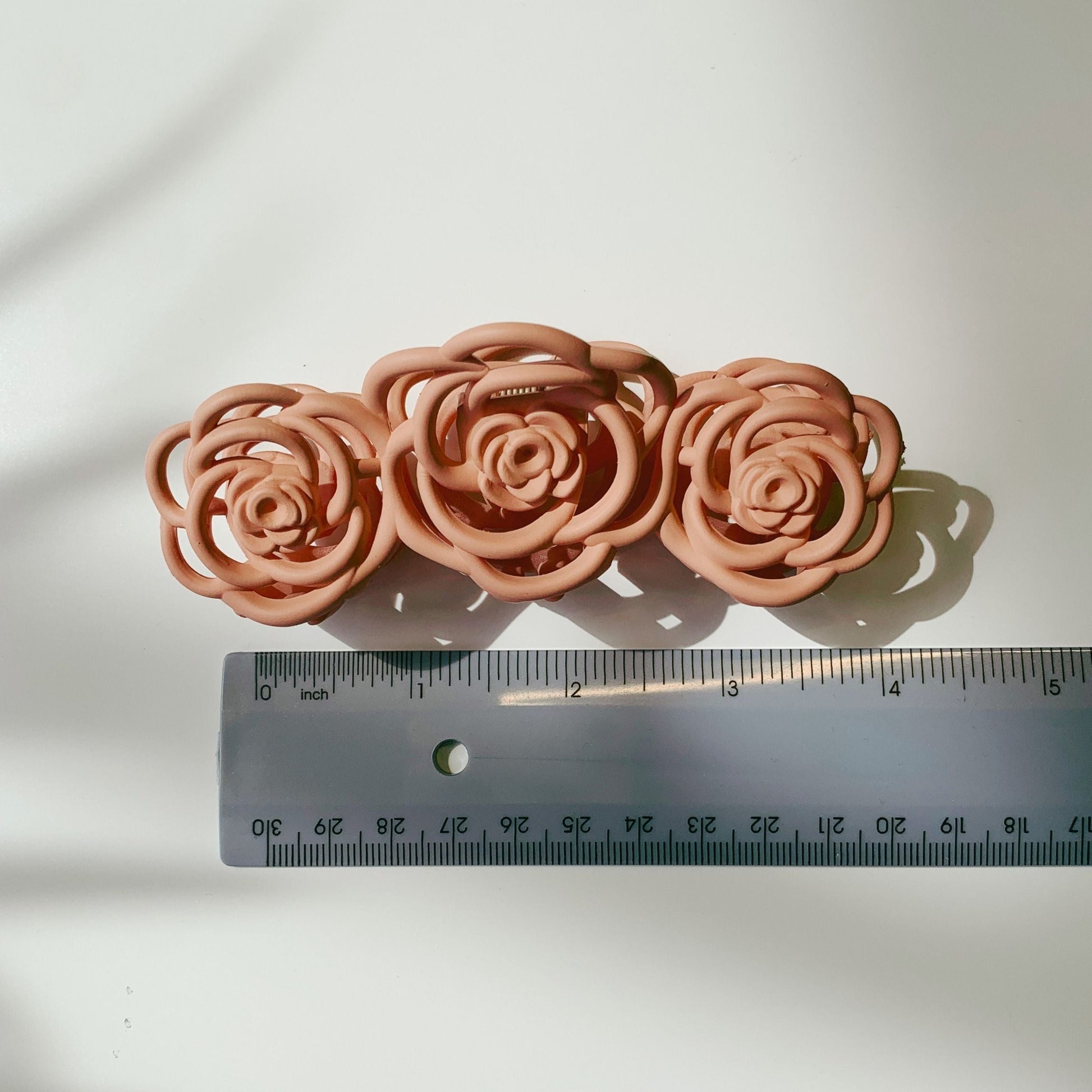 This claw clip features three beautiful mauve roses, elevating any hairstyle and adding a touch of elegance.