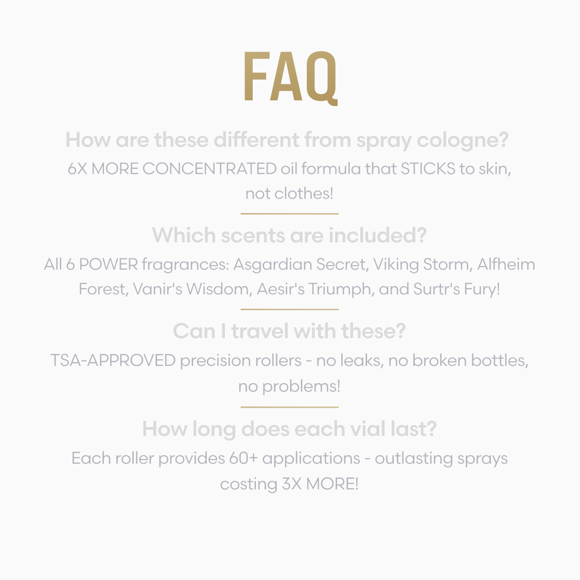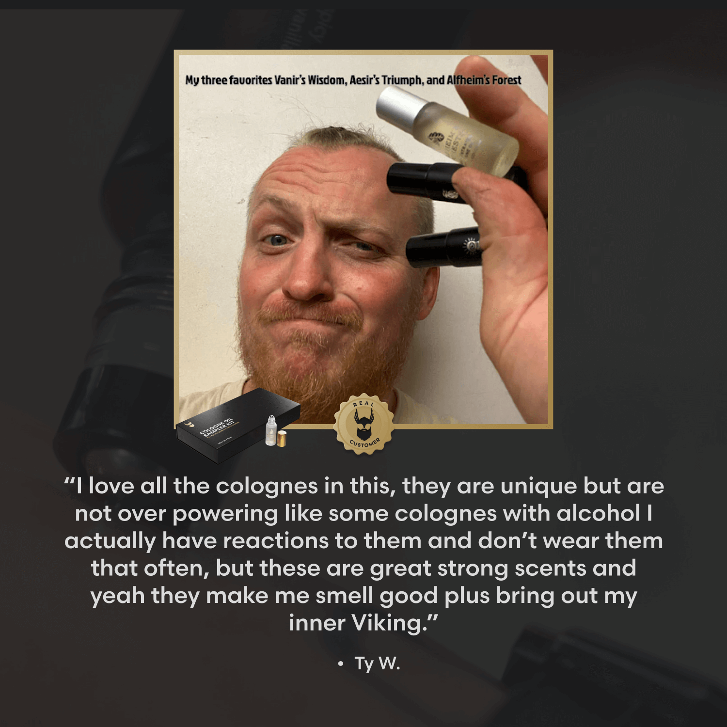 Try six of our most popular cologne oils—Asgardian Secret, Viking Storm, Alfheim Forest, Vanir’s Wisdom, Valhalla's Gates and Aesir’s Triumph.