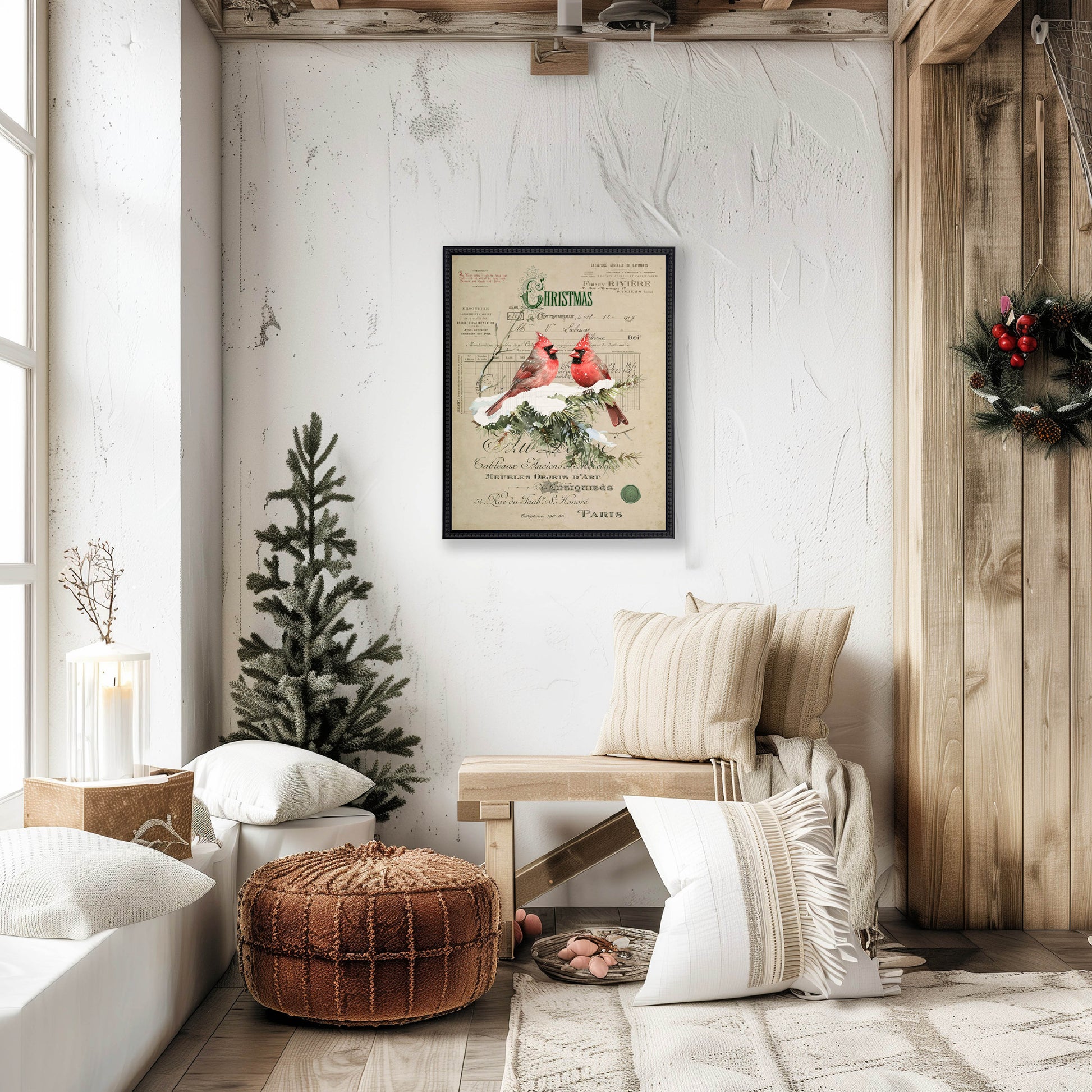 Vintage Painting of Cardinals on a distressed bookplate background