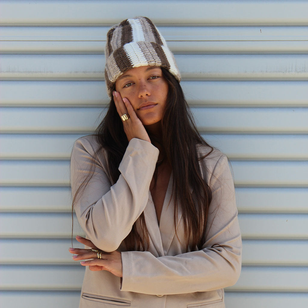 Alpaca Beanie - Natural Stripe