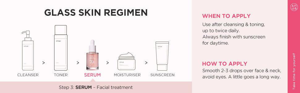 Anua Peach 70% Niacinamide Serum is a facial serum to deliver glass skin instantly and over time. This peach serum helps to brighten our dull skin with soft texture care, and it contains 5% of niacinamide concentration for high effectiveness.