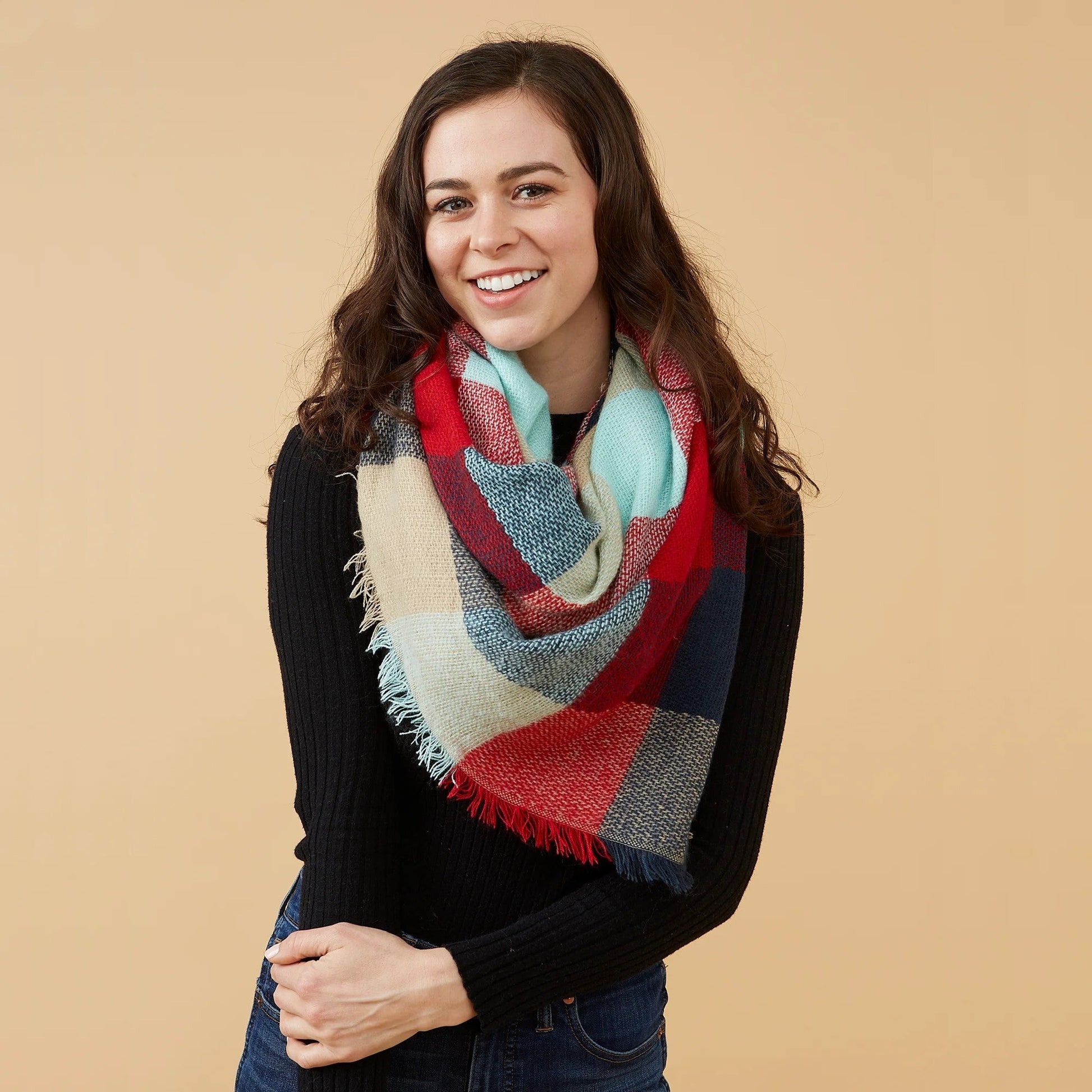Wrap yourself in the soft, cozy comfort of this aquamarine blanket scarf, measuring 55 x 55 inches. Made of 100% acrylic, it's perfect for adding warmth and style to any outfit during the fall and winter seasons. Whether looped around your neck or tied to your handbag, this fashion accessory offers versatility and a pop of color. Looking for a thoughtful gift for birthdays or Mother's Day? This aquamarine blanket scarf is a great choice! With its non-itching, super soft material and various ways to wear it, this scarf is a practical and stylish present for any occasion.