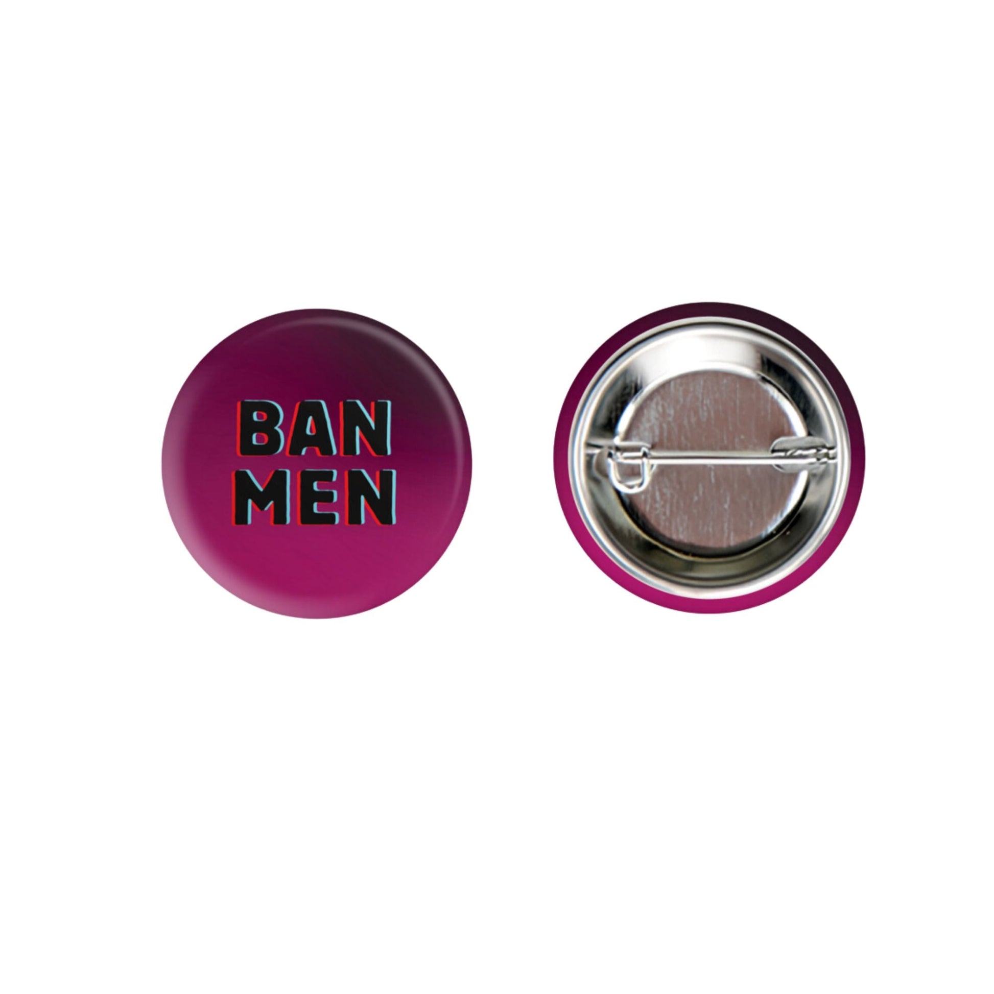 BAN MEN 1.25" Button Pin in Pink and Black | Feminist Pinback Button Badge