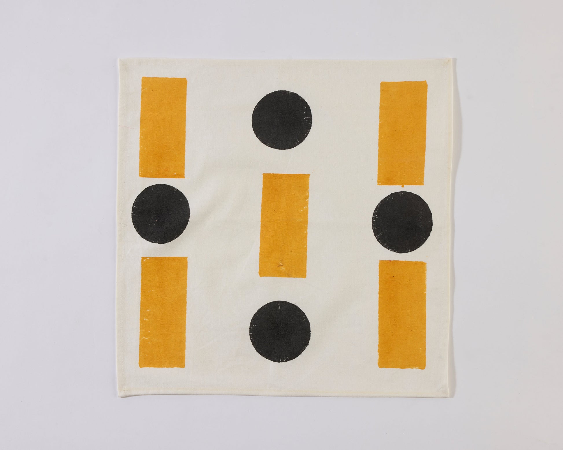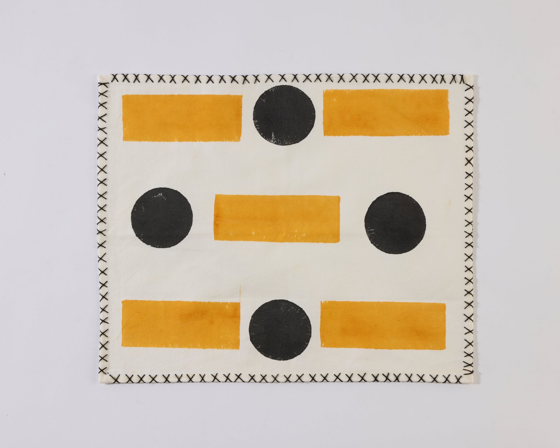 The Bauhaus (Reverse) Placemat Set features a modern geometric pattern with bold black circles and light orange rectangles, printed on a white cotton base. Inspired by Bauhaus design principles, these placemats add a structured yet artistic look to the dining table and are suitable for both everyday meals and special occasions. Artisans create each placemat with wood-carved blocks, natural dyes, and a hand-stitched Kantha border. The combination of block printing and stitching highlights the craftsmanship in every detail. Produced in small batches, each placemat may have slight variations that reflect the nature of handmade craft. - Size: 13" x 18" - Set of 4 or 6 with matching napkins - Machine wash on a gentle cycle with cold water and lay flat to dry - Handmade in India - Designed in and ships from California