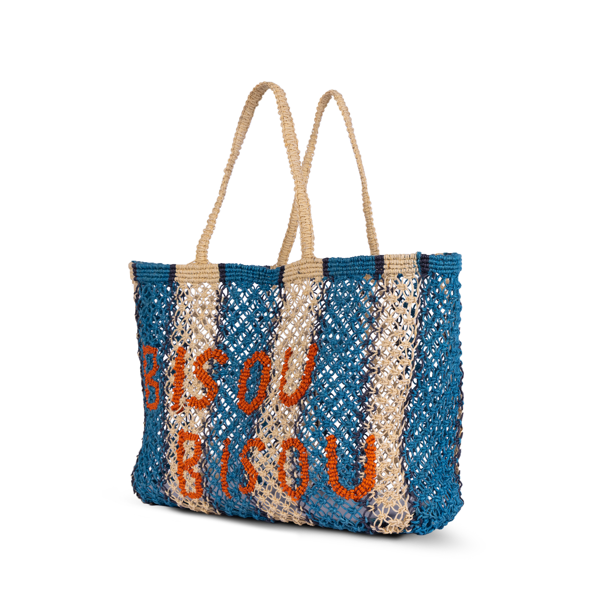 Artisan-crafted jute tote with bold stripes and cheeky French flair Discover the beauty of our Woven Macrame Jute Bags, crafted by a collective of skilled women artisans in India. Made from 100% natural jute, each tote is a tribute to traditional macramé craftsmanship, slow fashion, and sustainability. Lightweight yet sturdy, every piece is entirely handmade—making it a unique companion for market strolls, travel days, or everyday errands. Each bag carries the story of the hands that made it—and now, you carry that story forward. Features & Details: ✅ 100% Sustainable – Made with natural jute, a strong, biodegradable fiber, and embroidered with cotton accents. The nature of this material means that the bags can withstand intense use and the test of time. And after a long and happy life, they can biodegrade on the compost. 🧵 Handwoven with Care – Crafted entirely by hand using traditional macrame techniques—no electricity or machinery used. 🌍 Ethically Made – Created by women artisans in India, empowering a growing community through fair and meaningful work. 💪 Strong & Durable – Uses 450 meters of jute and can hold approx. 22–30 lbs (10–14 kg) without compromising on style. ✨ Versatile & Stylish – Perfect for vacations, daily errands, farmers markets, or as an eye-catching statement tote. 🎨 Naturally Dyed – Each strand of jute is dyed by hand before being knotted into vibrant, textured patterns. 📏 Dimensions (Approximate): 17"L x 4"W x 13"H | Handle Drop: 8 inches Each bag is a beautiful expression of artisan skill and conscious design. Because each bag is handmade, it makes each one unique and not one bag is exactly the same, meaning variances in color, texture and size may occur.