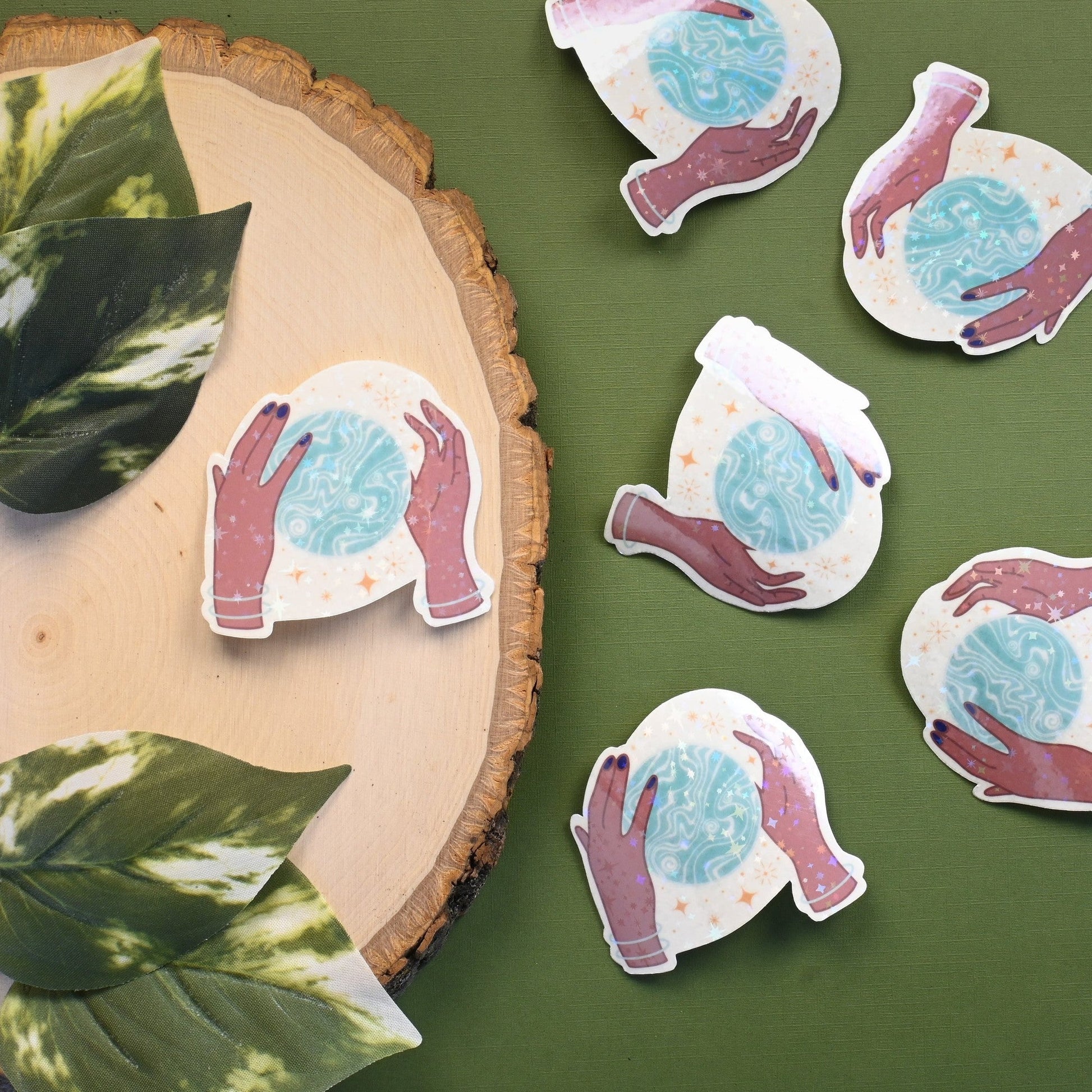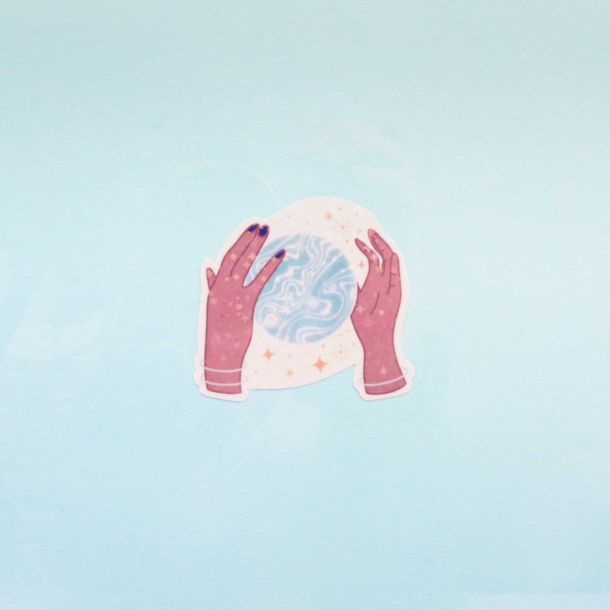 This celestial, magical sticker shows a planet in the palms of hands. This sticker is printed on crystal clear transparent sticker paper, letting the magical galaxy in the background, float in space!