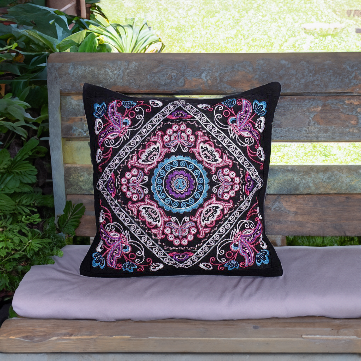This embroidered pillow is handcrafted by our artisan partners in Northern Thailand, where traditional techniques and generations of skill come together in every stitch. Made from durable cotton fabric and detailed with intricate embroidered thread, each piece is created entirely by hand, making no two pillows exactly alike.