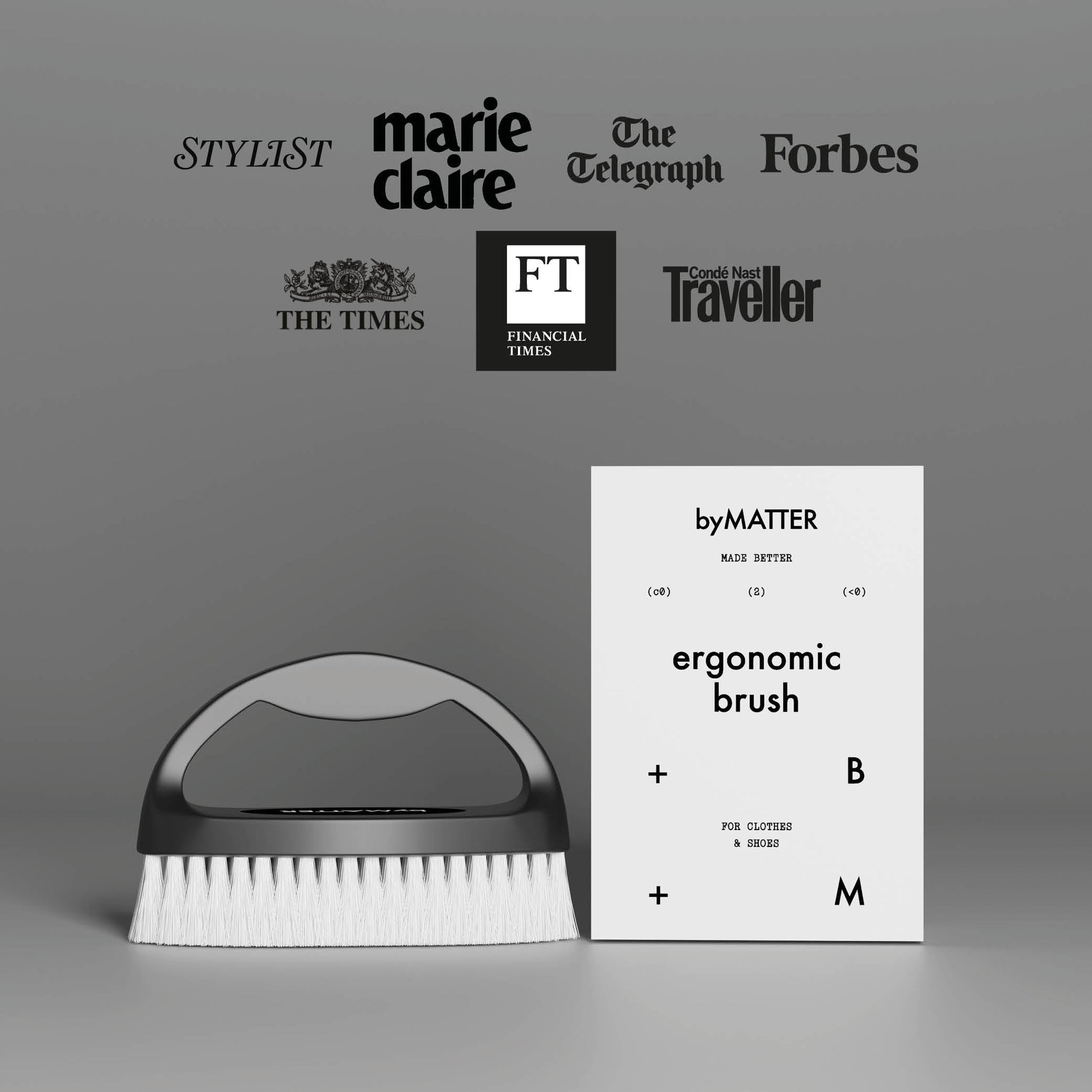 Ergonomic Brush designed to tackle dirt and stains on clothes and shoes.