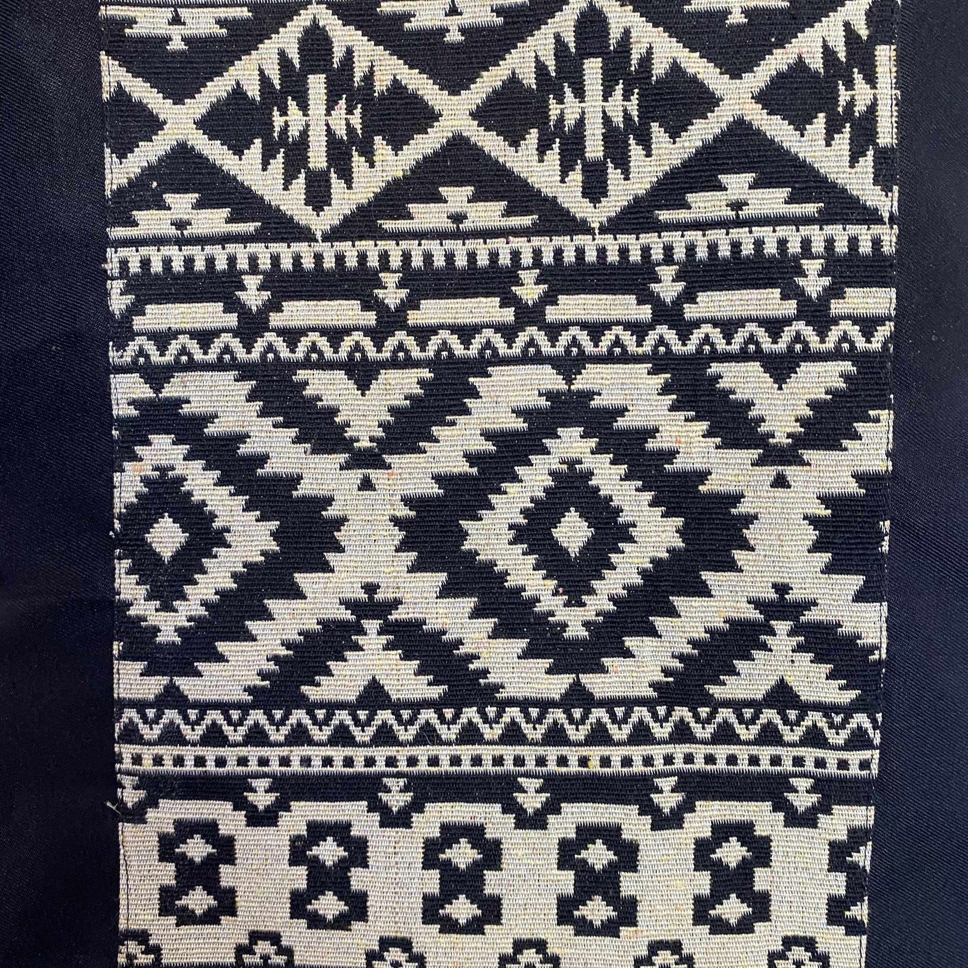 This yoga bag is handmade using a gorgeous geometric embroidery inspired from traditional fabric from the Hmong hill-tribes in Northern Thailand. A zippered closure on the side to easily take your mat in and out. Extra wide circumference for thicker mats. Includes a phone/key pocket on the top to keep essentials!