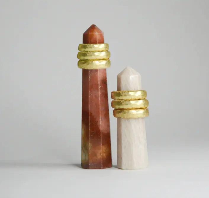 Make a statement with our Hammered Gold Orb Ring - a captivating, eco-friendly piece crafted from recycled brass. With its textured, unisex design, this band exudes a bold and edgy aesthetic, while its unique play of light creates depth and character. Stack it with your everyday rings, or wear it solo - either way, this timeless and contemporary piece is sure to turn heads. Shop our selection of ethically and sustainably produced jewelry today and find your perfect match! With the Hammered Gold Orb Ring, eco-friendly fashionistas can make a statement and feel good about their fashion choices.