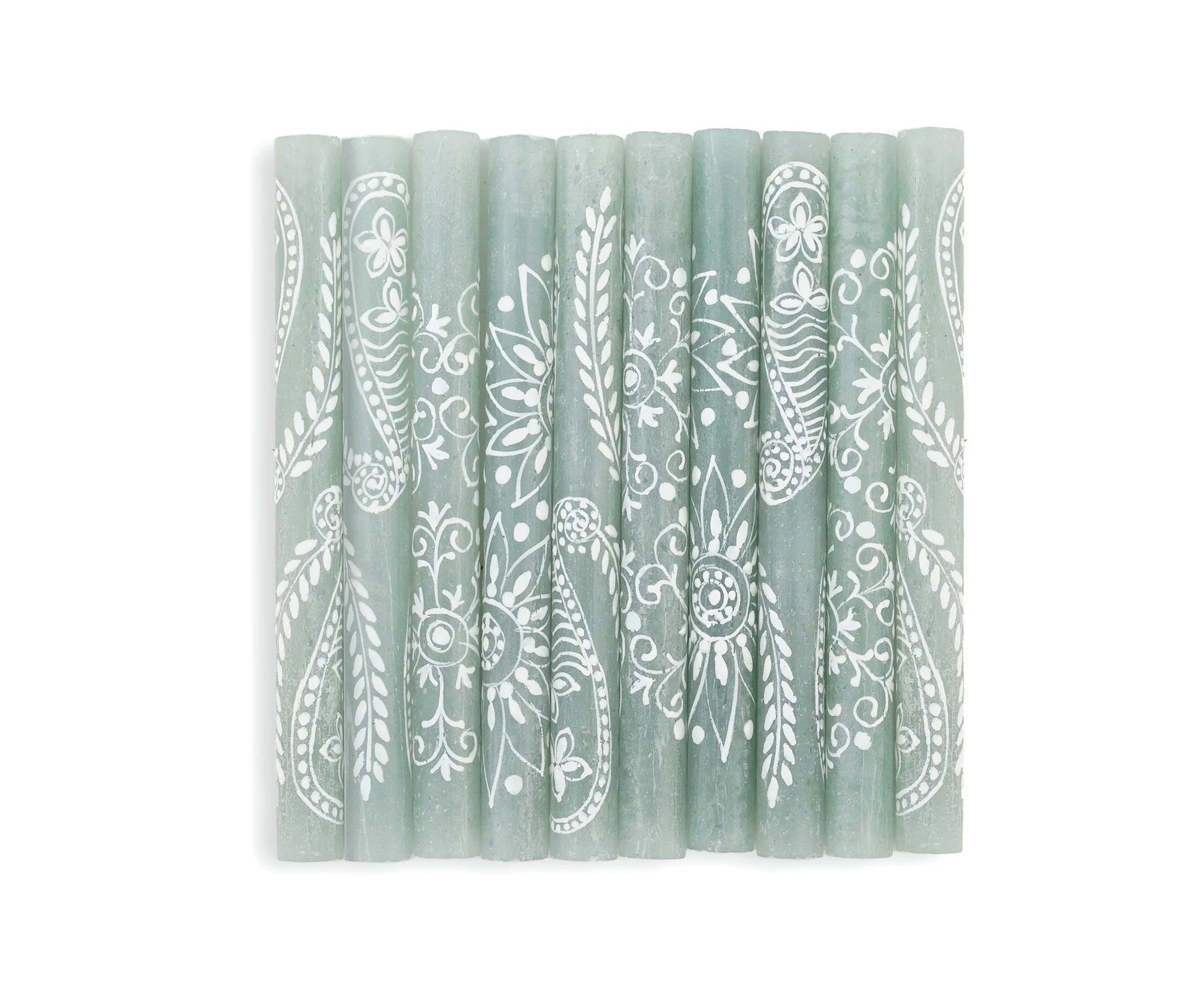 Henna Duck Egg candles are an elegant highlight to any table or room! *Lovingly hand poured and hand painted in South Africa. *Crafted primarily by single mothers from the local rural community. *On average, the artisans support an extended family of 12-15 people. PRODUCT DESCRIPTION: *Highest quality natural paraffin wax with 100% cotton wick *Unscented, smokeless, and free from added toxins *Tapers packaged as a matched pair *Each candle is uniquely made. Your delivered candle will likely appear slightly different from the website photo, but consistent with the theme of the collection.