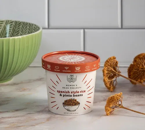 Women’s Bean Project Instant Rice and Bean Cups are an easy, balanced solution for school and office lunches. Just add hot water for a delicious, warm meal anywhere and anytime! Includes traditional tomato chili seasoning mixed with earthy pinto beans and white rice.