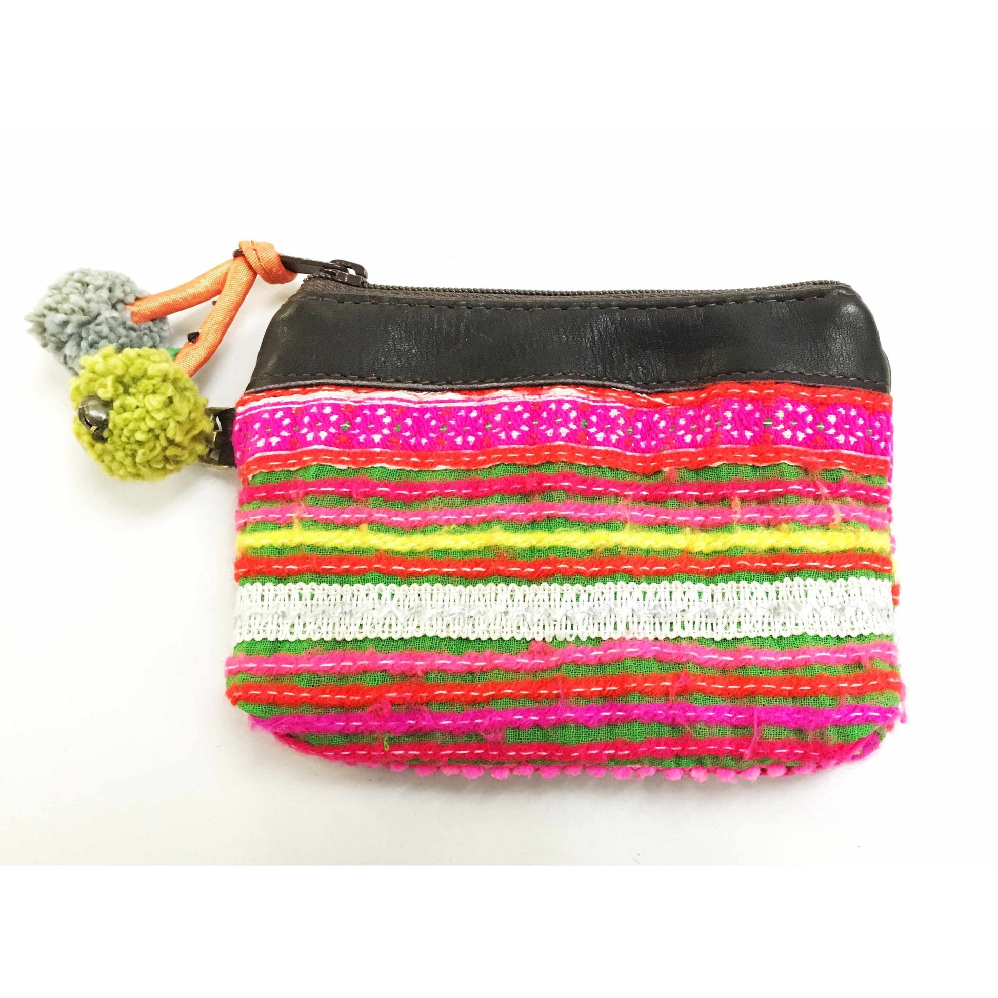 Stay organized with our Hmong Pompom Upcycled Coin Purses, handcrafted by Pranee in the highlands of Thailand. Each purse is made from one-of-a-kind, vintage fabrics handwoven by the Hmong hill tribes of Northern Thailand, ensuring a unique piece with every purchase.