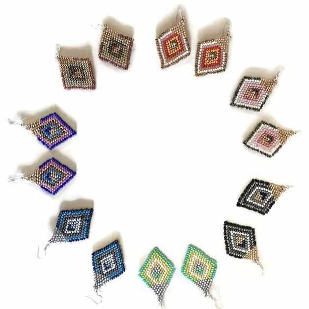 Elevate your look with our stunning Lily earrings, handmade by skilled artisans in the highlands of Guatemala using Fair Trade practices. These beaded earrings feature a beautiful diamond design made with Czech glass seed beads, in a variety of colors to match any outfit.