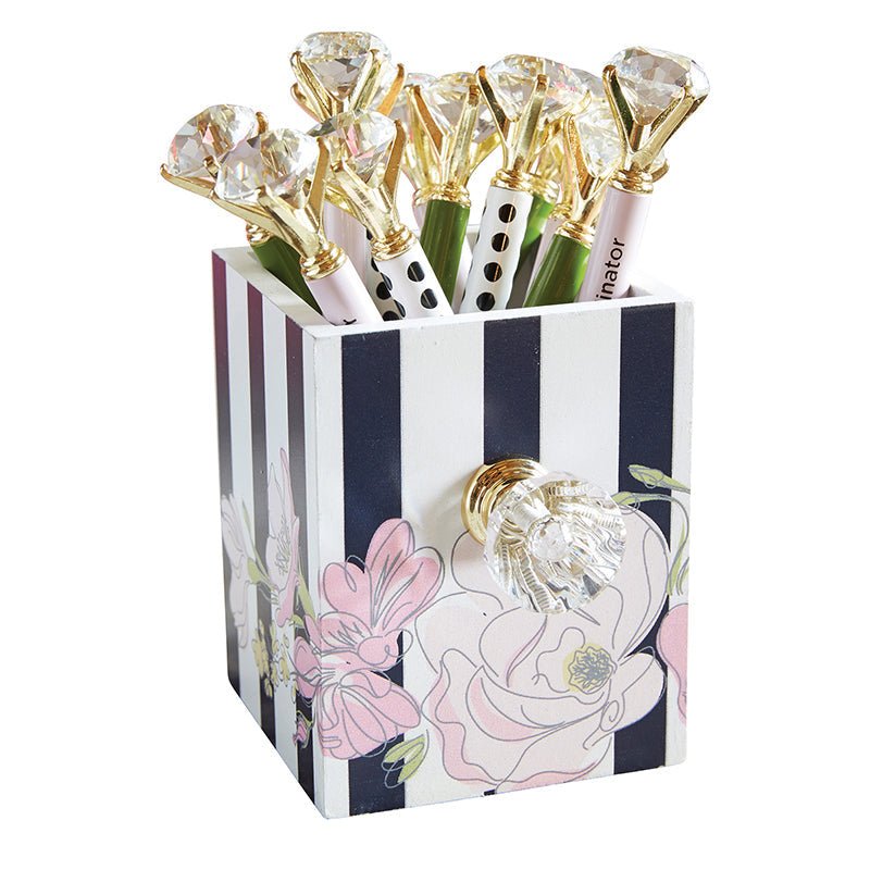Add a touch of elegance to your workspace with the Moss Green Gem Pen by Santa Barbara Design Studio. This metal ballpoint twist pen measures 5.5" long and features a stunning moss green hue that is sure to stand out on any desk. Makes a thoughtful gift for coworkers or friends who appreciate novelty office supplies. Looking for a unique and giftable single pen? Look no further than the Santa Barbara Gem Pens collection, featuring the Moss Green Gem Pen. This glamorous pen is perfect for adding a pop of color to your desk and makes a great gift for anyone who loves novelty office supplies.
