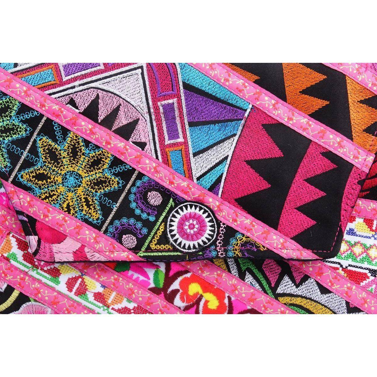 Discover more than just a clutch – it's a wearable work of art. Meticulously crafted with patchwork fabric and lined with black cotton, each clutch is adorned with either pink or brown trim, offering a unique blend of traditional Thai design and contemporary style. Handmade in Northern Thailand by the talented artisan Ae, this clutch embodies the essence of skilled craftsmanship.
