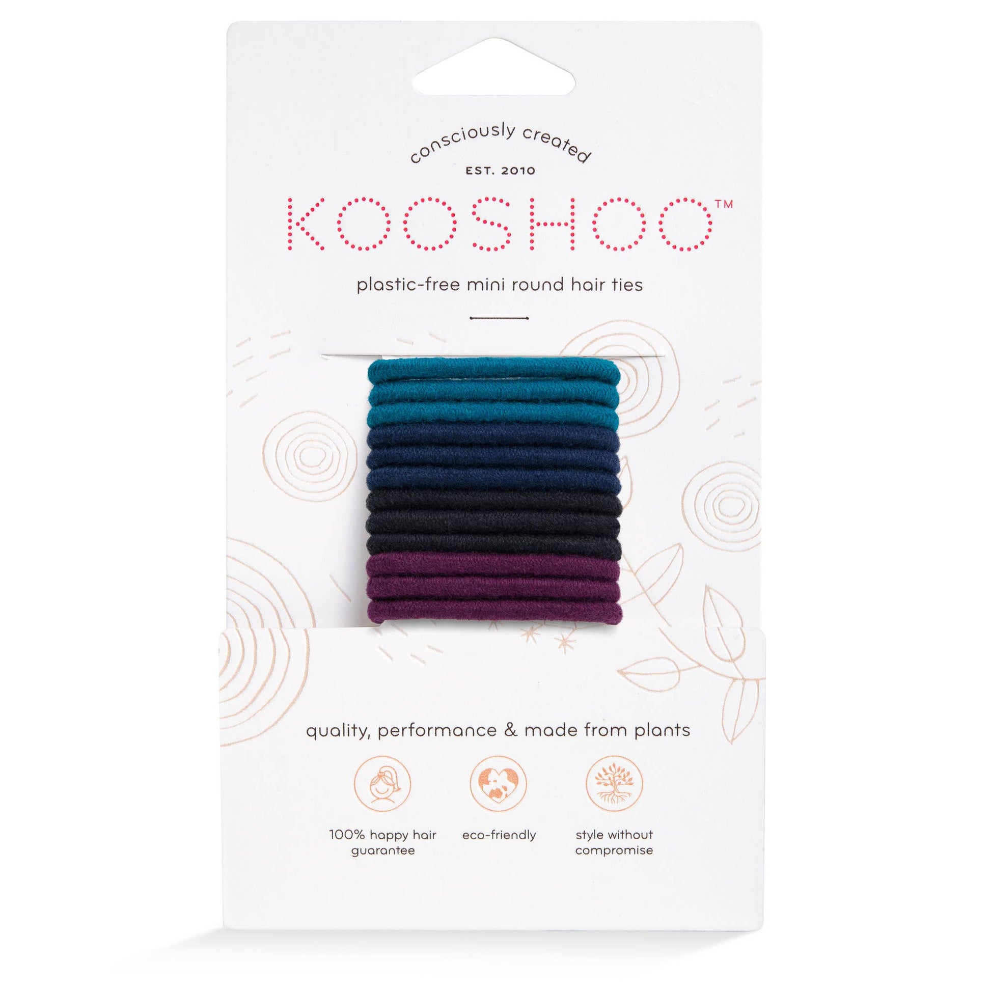KOOSHOO Plastic-Free Mini Round Hair Ties - Zero-Waste, Cotton Hair Elastics for Braids, Intricate Styles, Small Ponytails, & Kids - Durable, No-Damage Hair Bands - Fair Trade & Ethically Made PLASTIC FREE HAIR TIES: Our Minis are perfectly sized for braids, small ponytails, intricate styles, & even kids! Made of 2 ingredients: certified organic cotton & sustainably sourced, fair trade natural tree rubber. Look good & feel good! BUILT TO LAST & BIODEGRADABLE: Did you know every hair elastic you’ve ever owned still exists today? Here’s a product with unmatched strength & stretchability to stand the test of time, yet 100% biodegradable. Lasts in your hair, but not in a landfill! GREAT FOR YOUR HAIR: Completely creaseless & won’t pull, slip, or cause any discomfort or damage to your hair! SOCIALLY & ENVIRONMENTALLY CONSCIOUS: 100% plastic-free & ethically made from sustainably sourced, all natural, plant-based materials and dyed using certified non-toxic dyes. Recyclable packaging