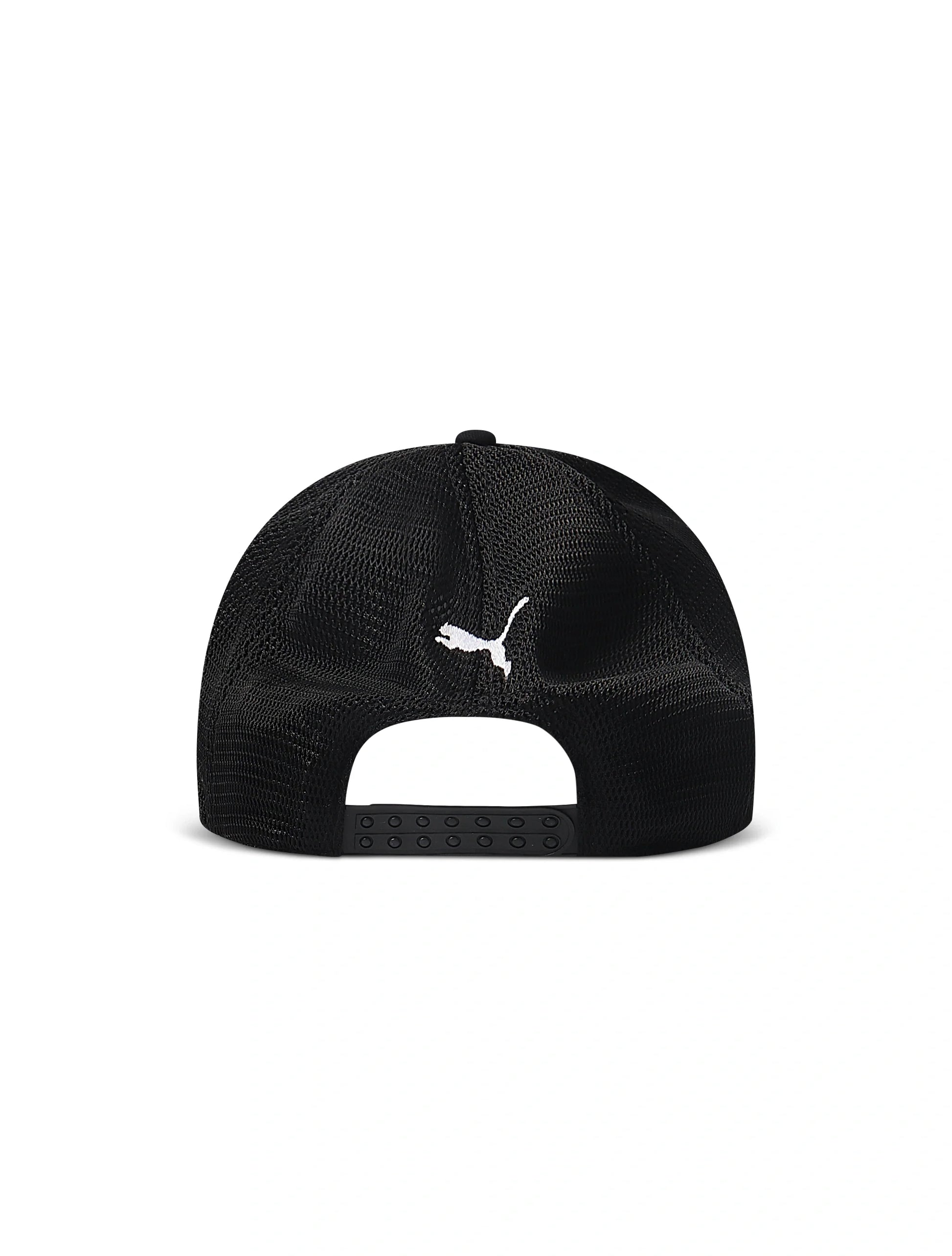Part of the Puma x Scuderia Ferrari collection, the Puma Ferrari Trucker Cap in black blends motorsport heritage with everyday street style. Featuring mesh back panels for breathability, a curved brim, and the iconic Ferrari branding, this cap delivers comfort and bold energy inspired by the track.