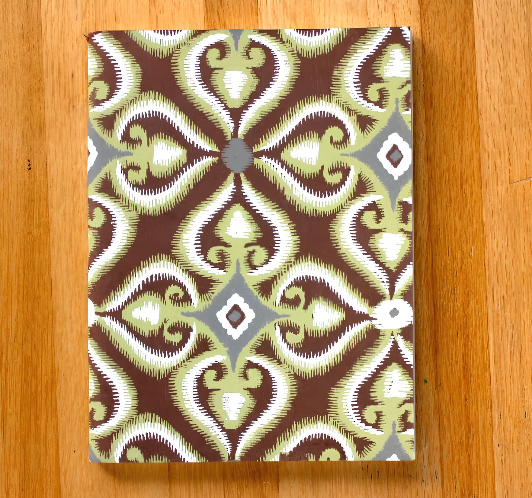 • Hand Screen Printed Cover – Available in Aqua Flower and Green Geometry