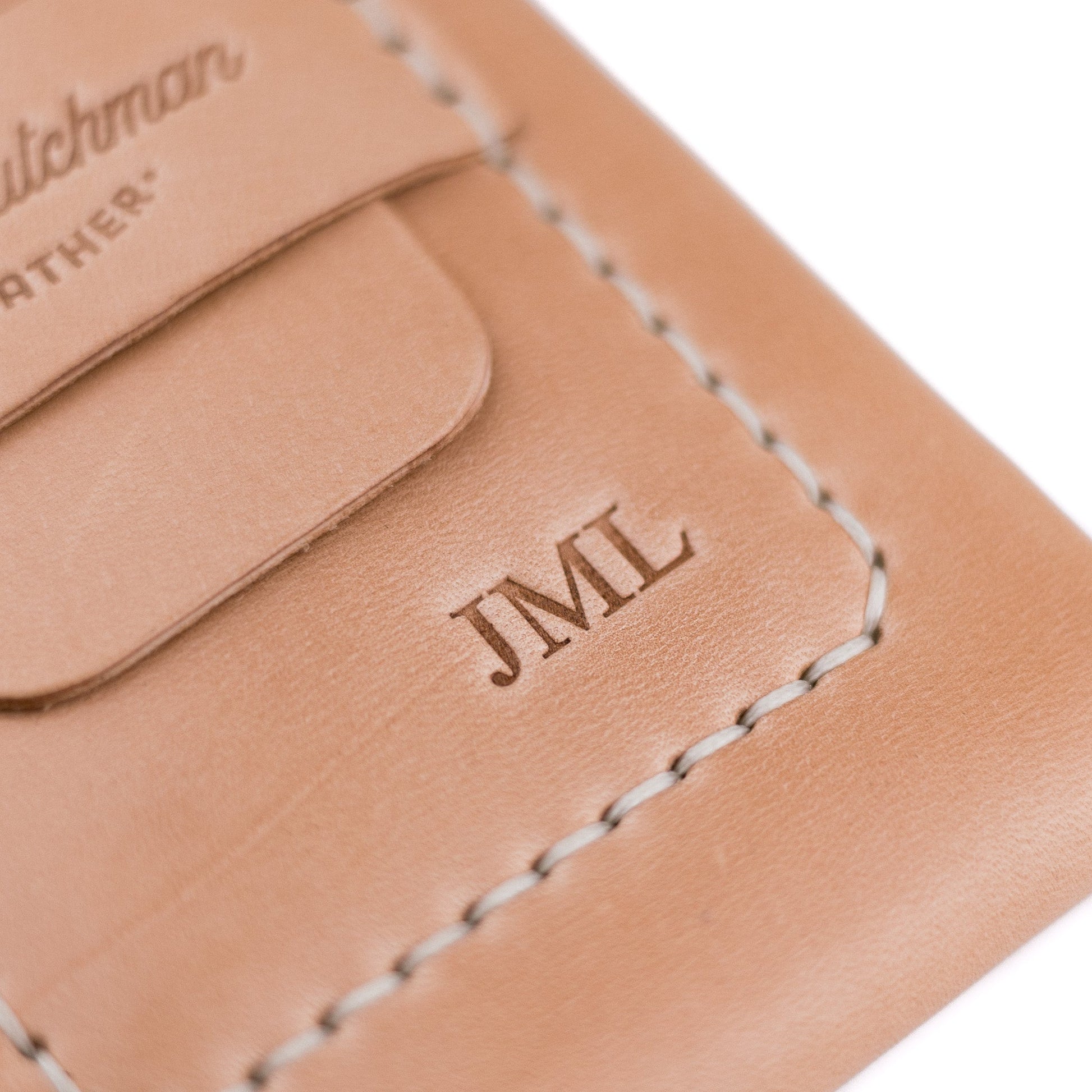 Monogramming available (up to 5 characters). Monogramming is stamped on front of wallet, visible when closed.
