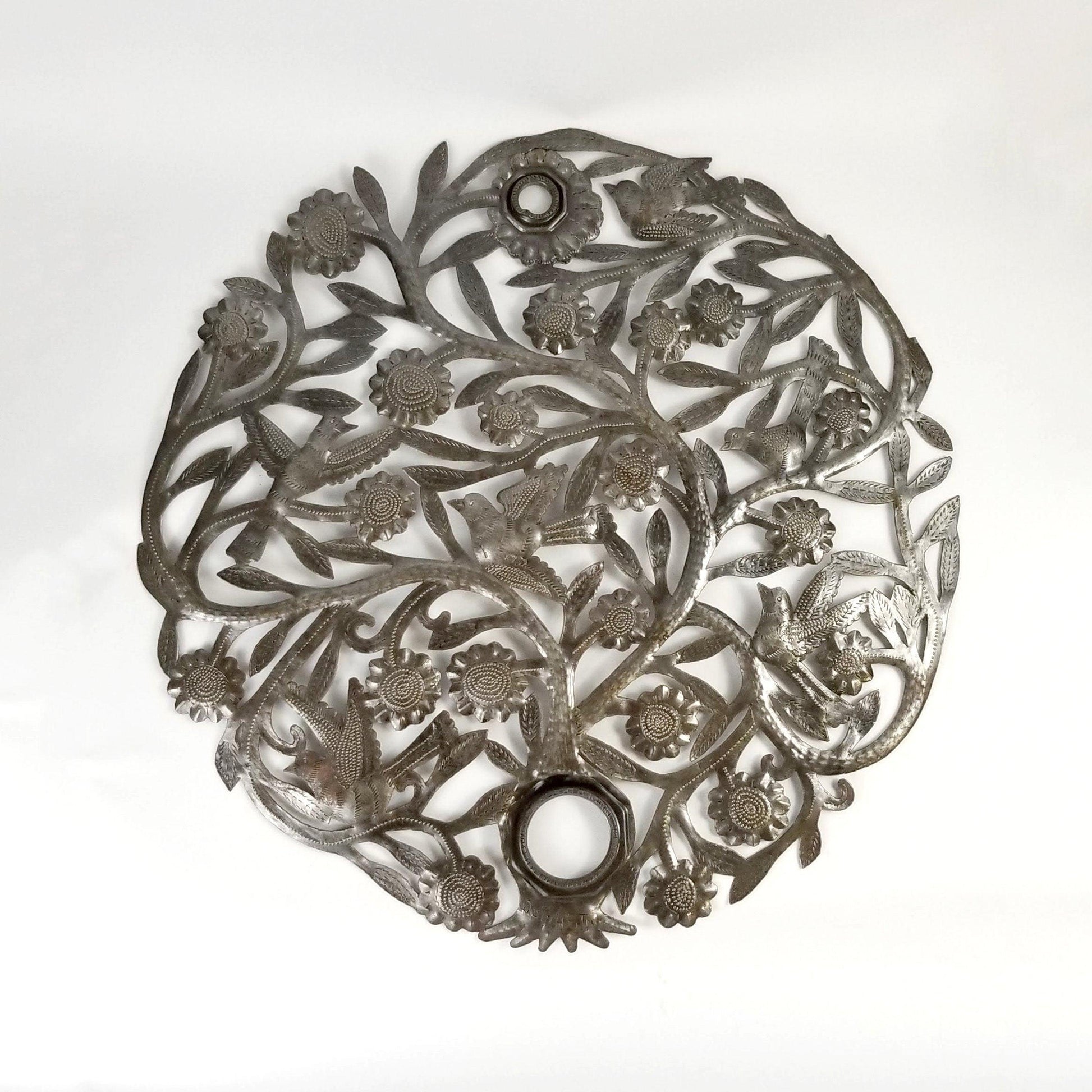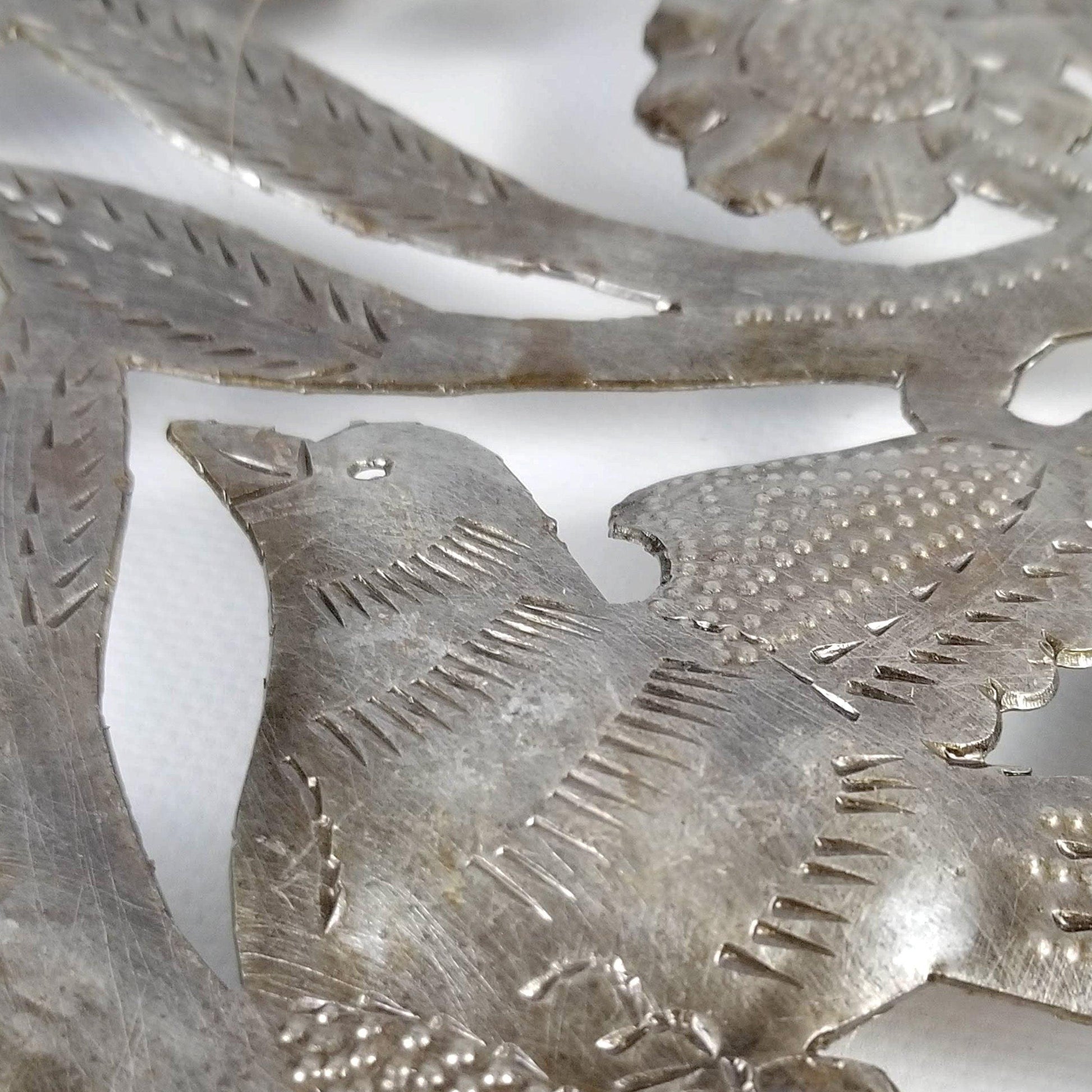 This tree of life is an analogy for human life: we have roots that ground and feed us, trunks that keep our minds and bodies steady, and branches that enable us to engage in others, in life, in heaven. In this Haitian version, the tree, flowers & doves commune – connecting the heavens with mortality.