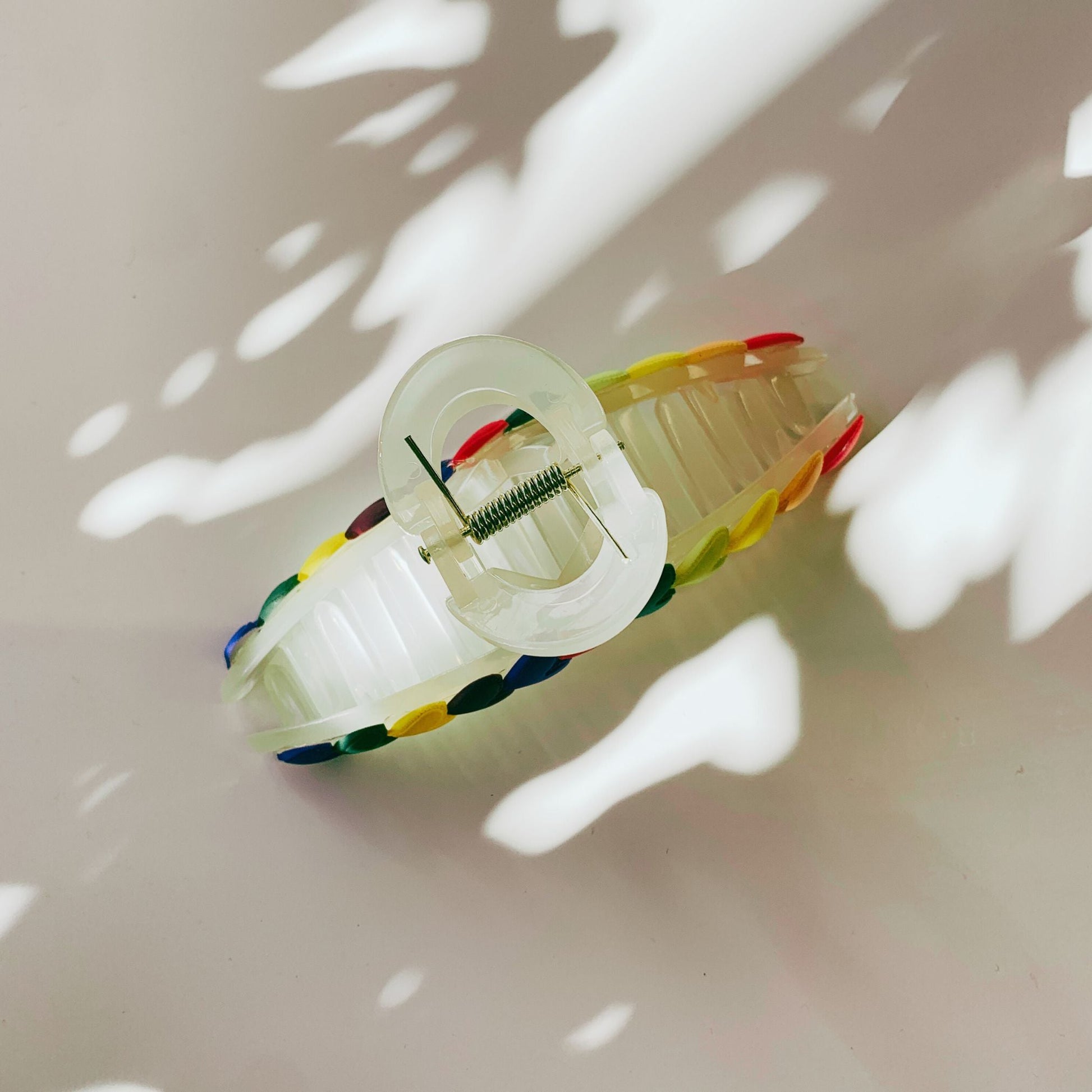 Velvet Claws Hair Clip | Heart Brite in '80s Rainbow | Claw Clip in Velvet Travel Bag