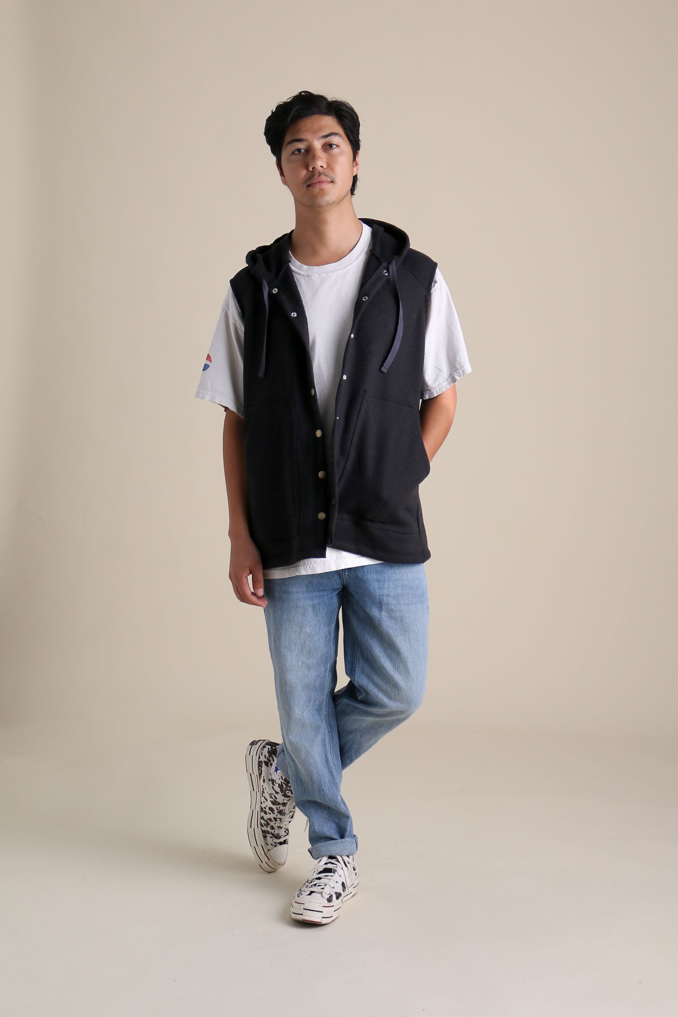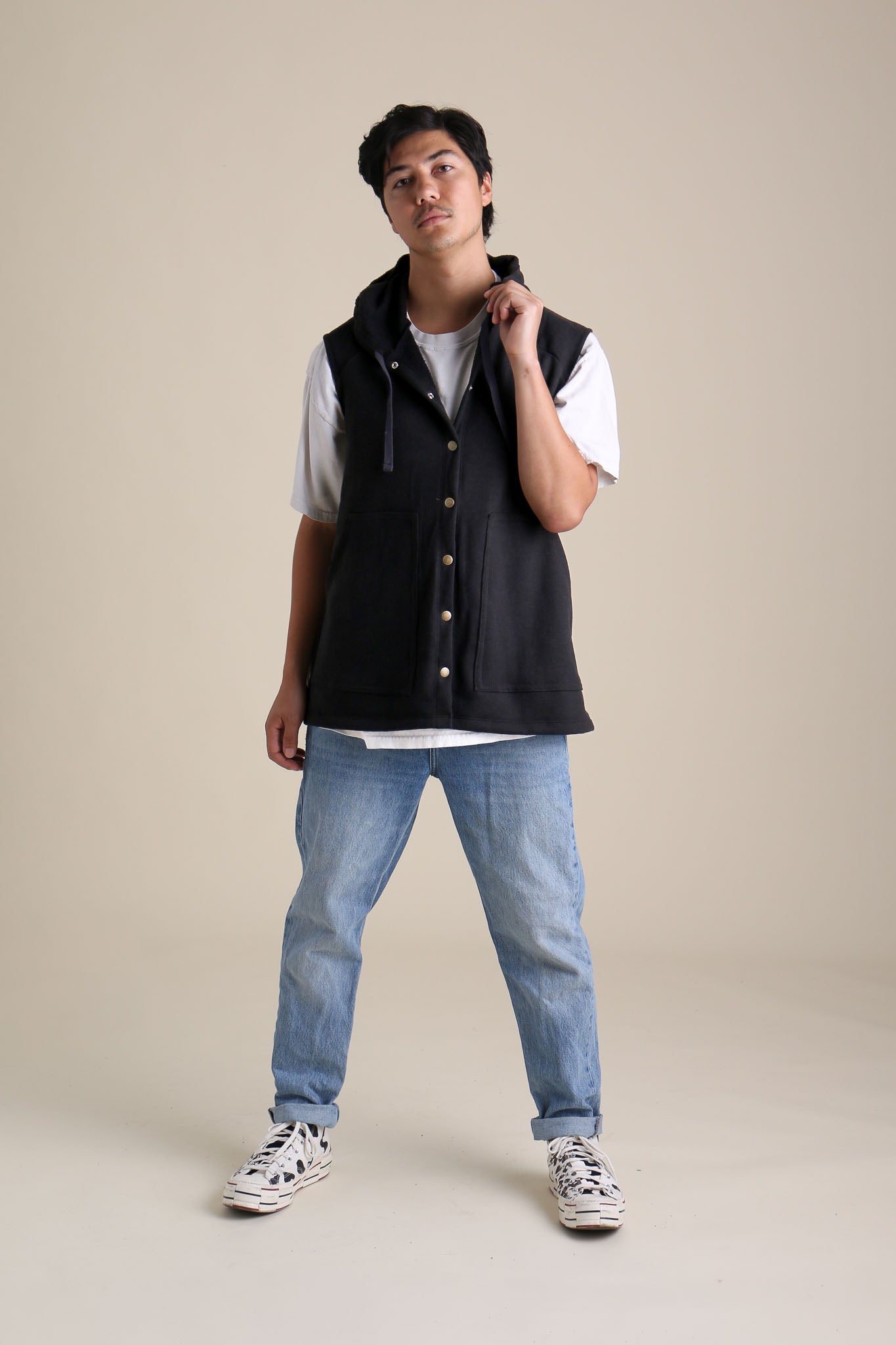 The perfect layering piece, this Wilder Vest features a roomy hip, deep patch pockets, brass snaps, and a big roomy hood with a drawstring. made with our cozy soft hemp fleece to keep you warm throughout the changing seasons.
