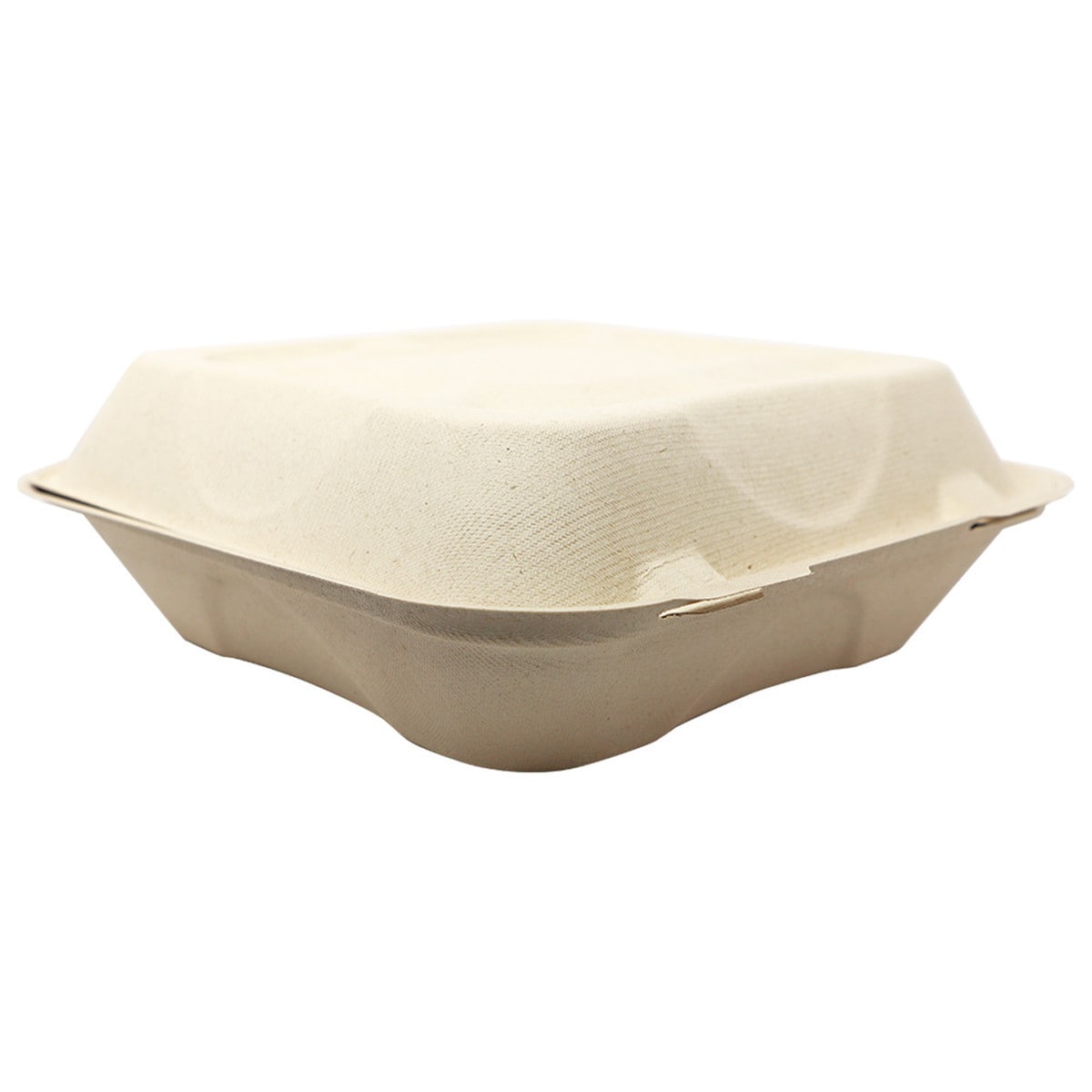 World Centric® 8x8x3" fiber clamshells are made from bamboo and unbleached plant fiber, an annually renewable resource, have a bio-based lining and contain no added PFAS. The bio-based lining prevents leaking of oil and moisture. These takeout containers are compostable, durable, grease and moisture resistant, freezer safe, and contain no wax or plastic lining. Great for takeout restaurants, cafes, and food trucks. Composts in 2 to 4 months in a commercial composting facility.
