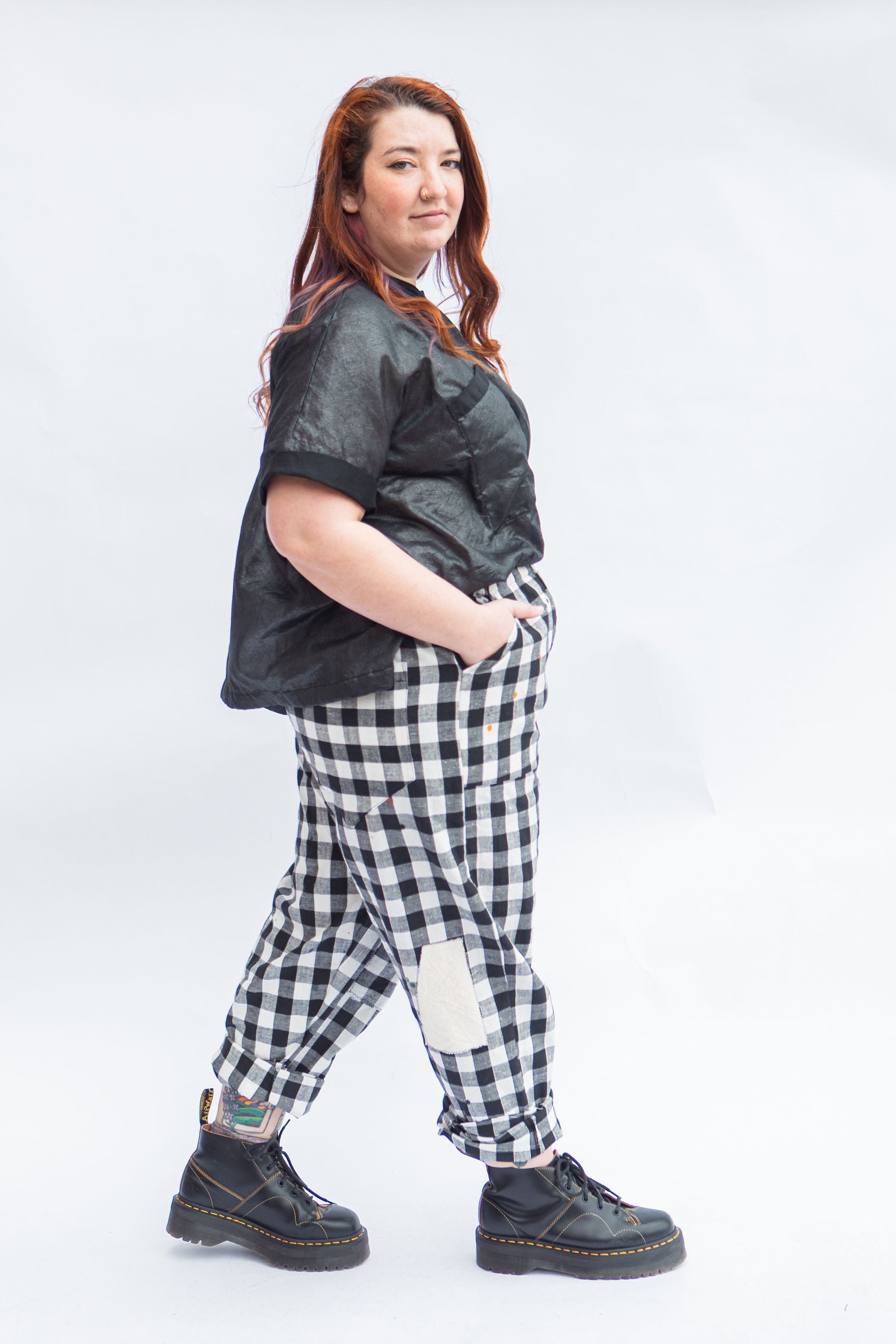 The Pocket Pant in Check offers an inclusive fit with a relaxed silhouette and elasticised waist for optimal comfort. Crafted from 100% hand woven cotton, these pants feature lined patch pockets and a cuff for an extra touch of style.