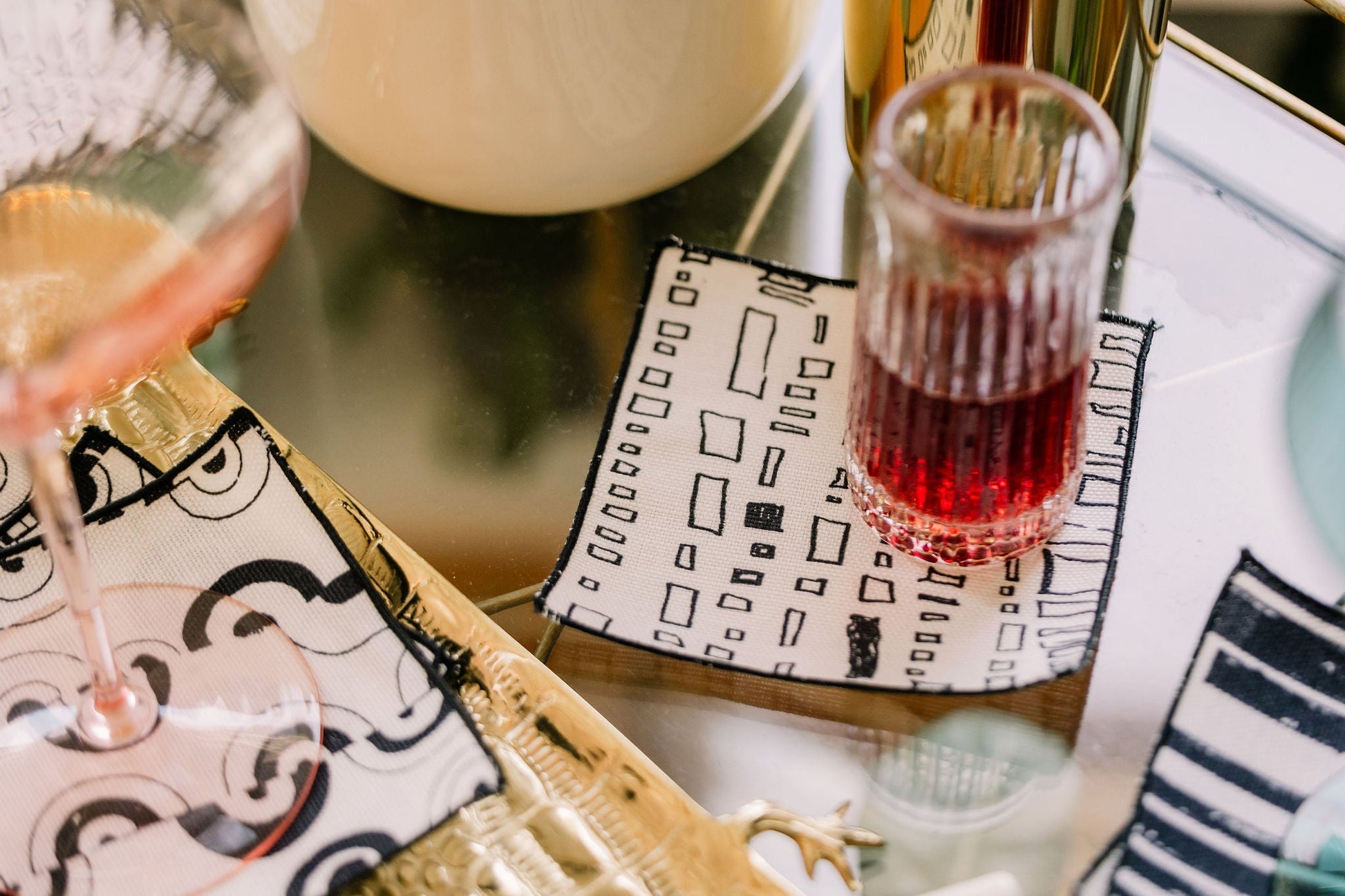 A mix of Bent influence, sustainable problem solving and design - the Capistrano 5" x 5" cocktail napkin in Clairvoyant is undeniably California dreaming.