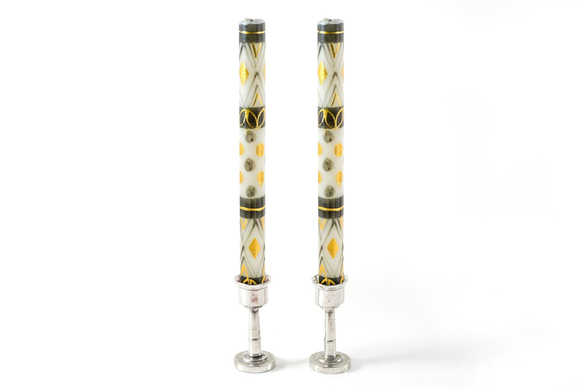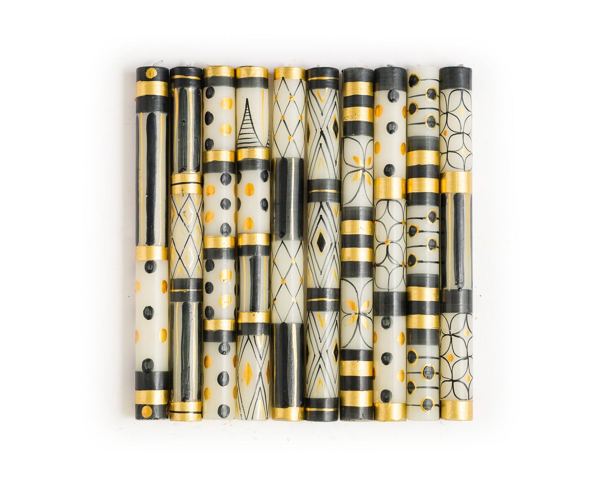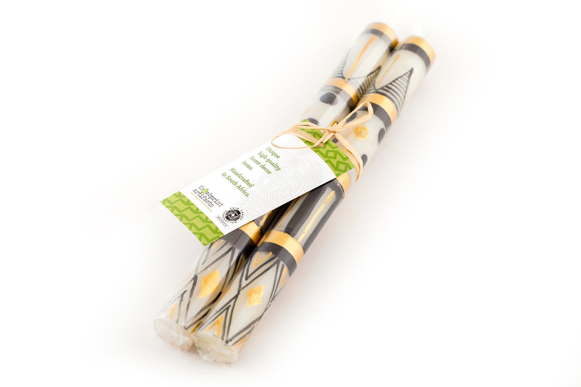 Light up and enhance your special occasion with this stunning Celebration Candle Collection! *Lovingly hand poured and hand painted in South Africa. *Crafted primarily by single mothers from the local rural community. *On average, each artisan supports an extended family of 12-15 people. PRODUCT DESCRIPTION: *Highest quality natural paraffin wax with 100% cotton wick *Unscented, smokeless, and free from added toxins *Tapers packaged as a matched pair *Each candle is uniquely made. Your delivered candle will likely appear slightly different from the website photo, but consistent with the theme of the collection.
