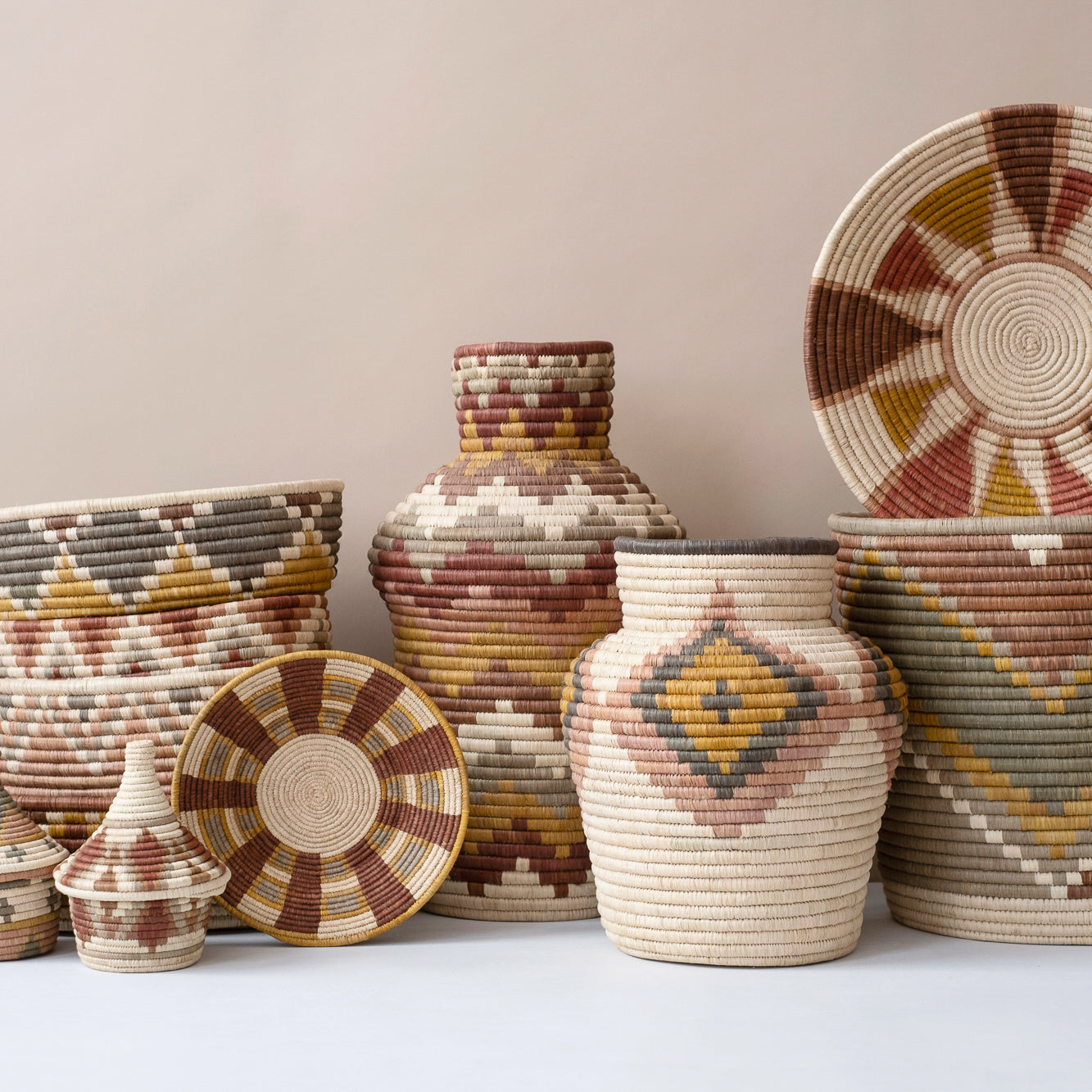 Handcrafted by women artisans from the Batoro tribe living in the very rural mountains of Western Uganda. These weavers are a part of a cooperative that provides training to single mothers, widows and other marginalized women who are subsistence farmers and weave baskets to provide additional income.